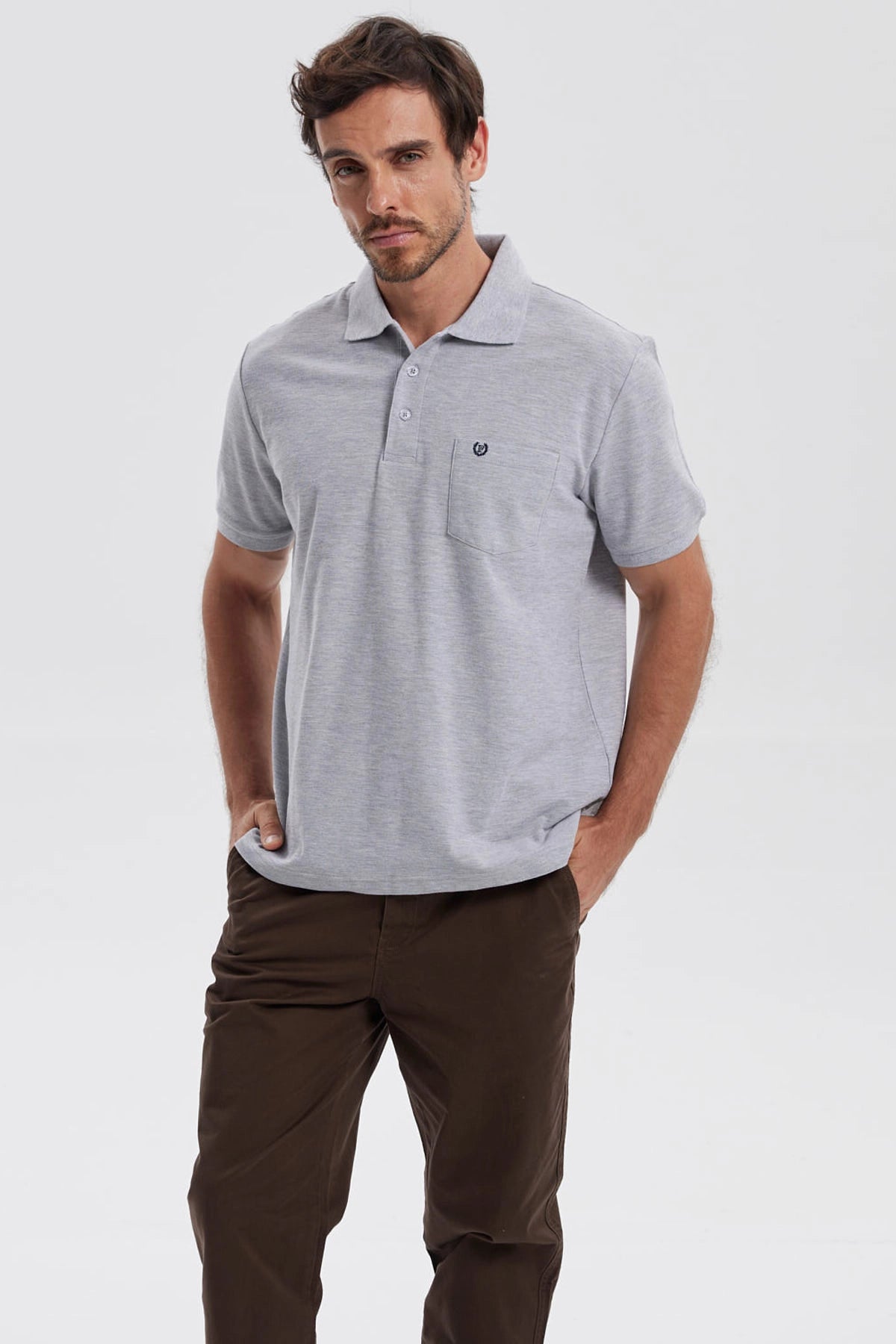 Polera Hombre Pique Básica Lisa Gris Melange