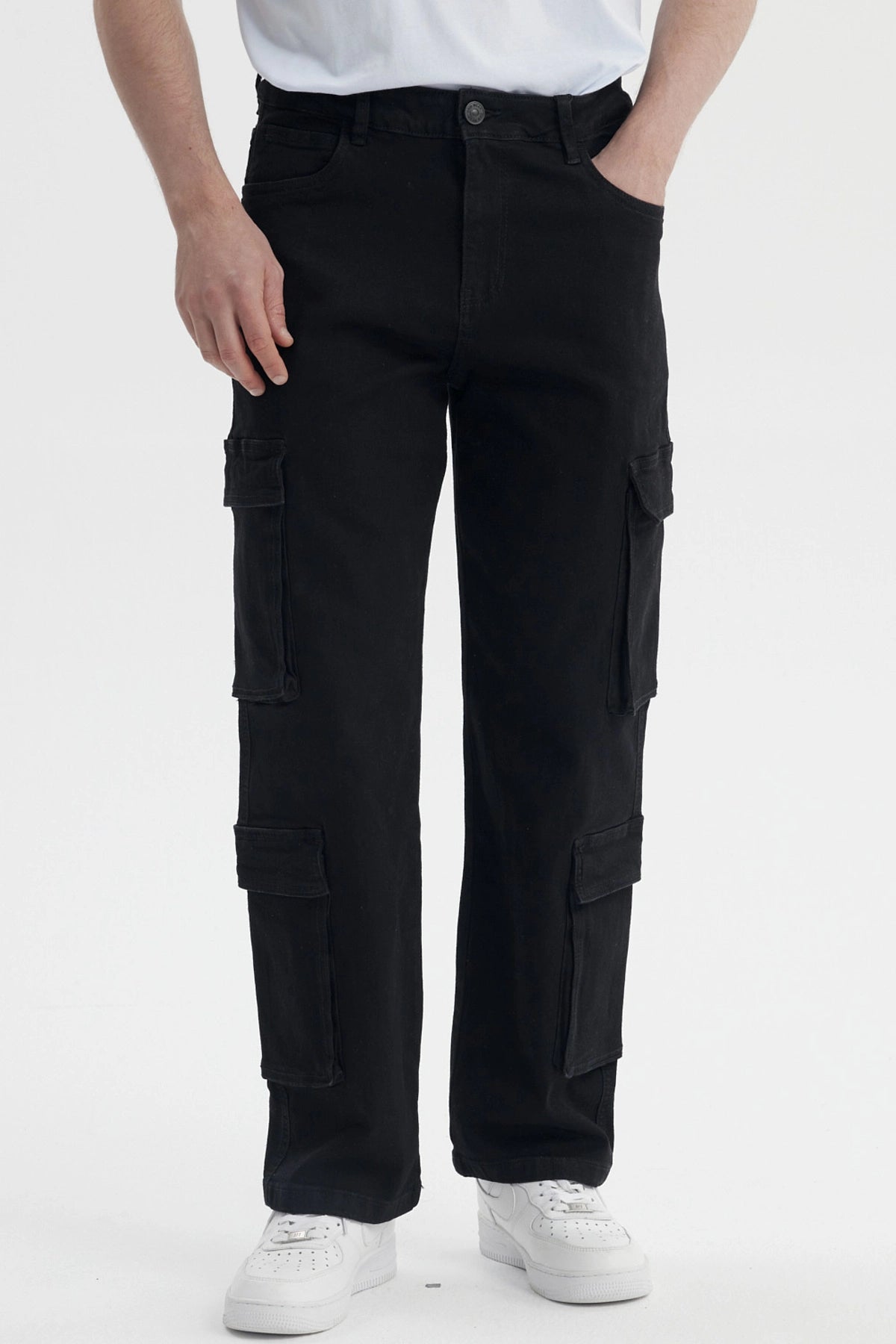 Jeans Hombre Doble Cargo Negro