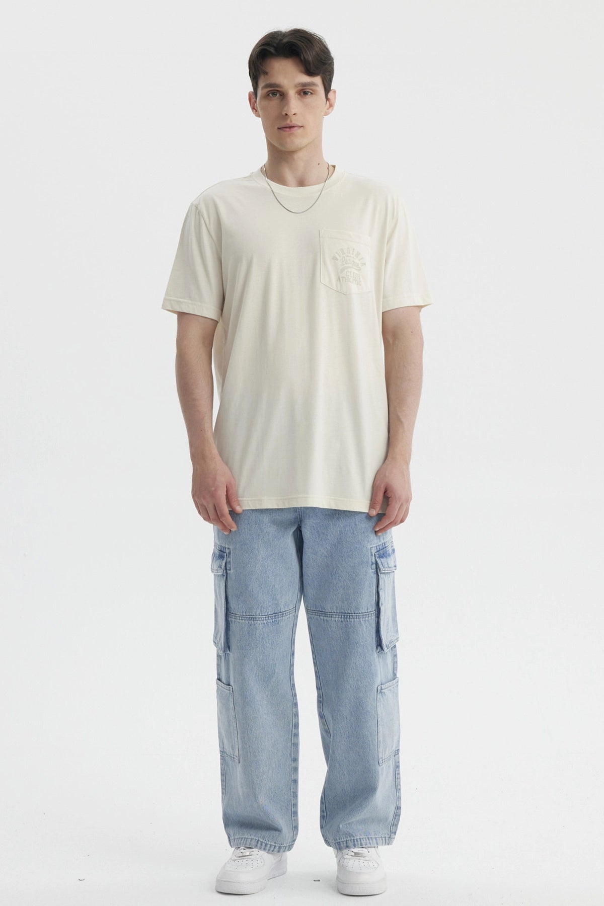 Inicio/Black Friday Vestuario/Polera Hombre Con Bolsillo Print Beige Claro