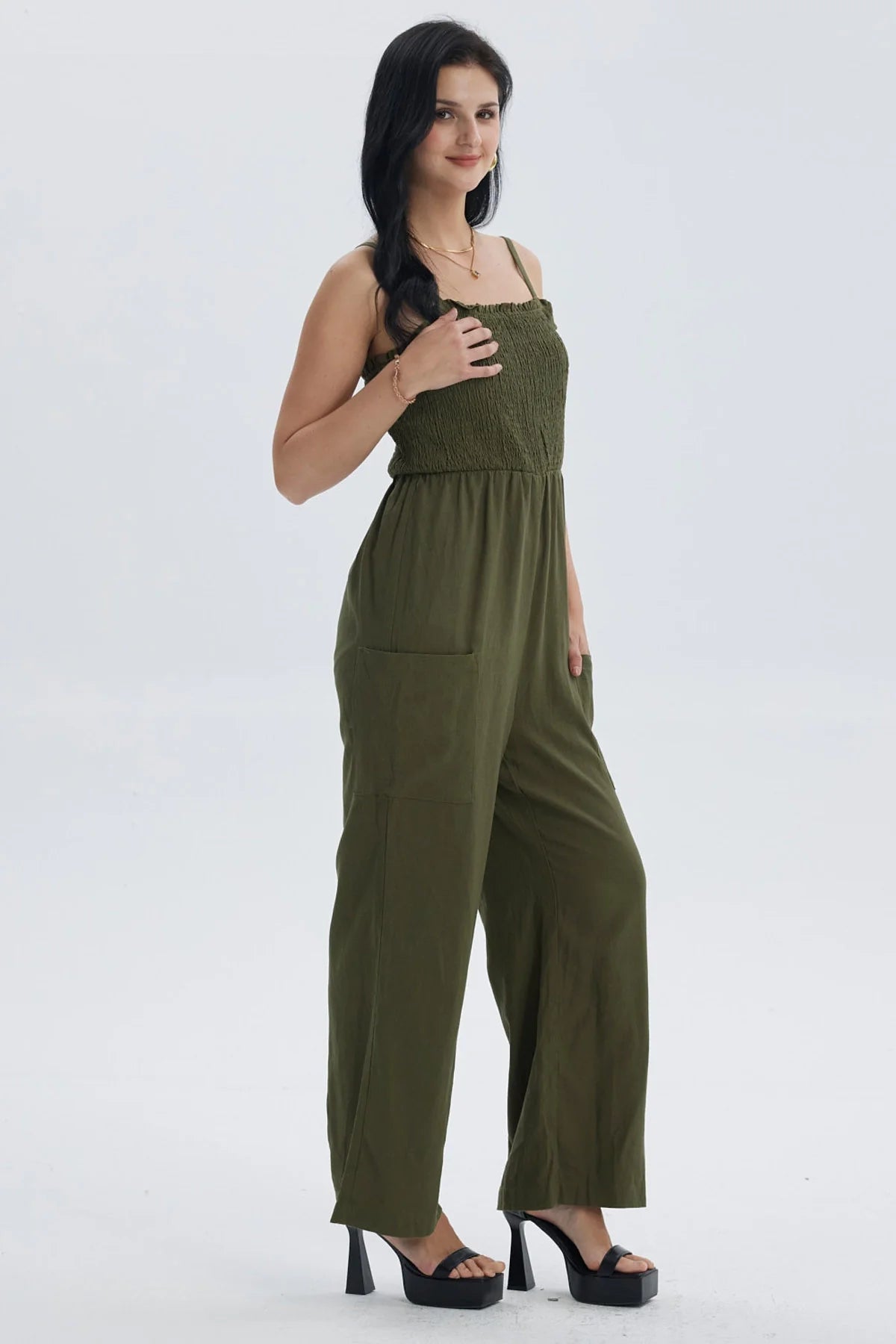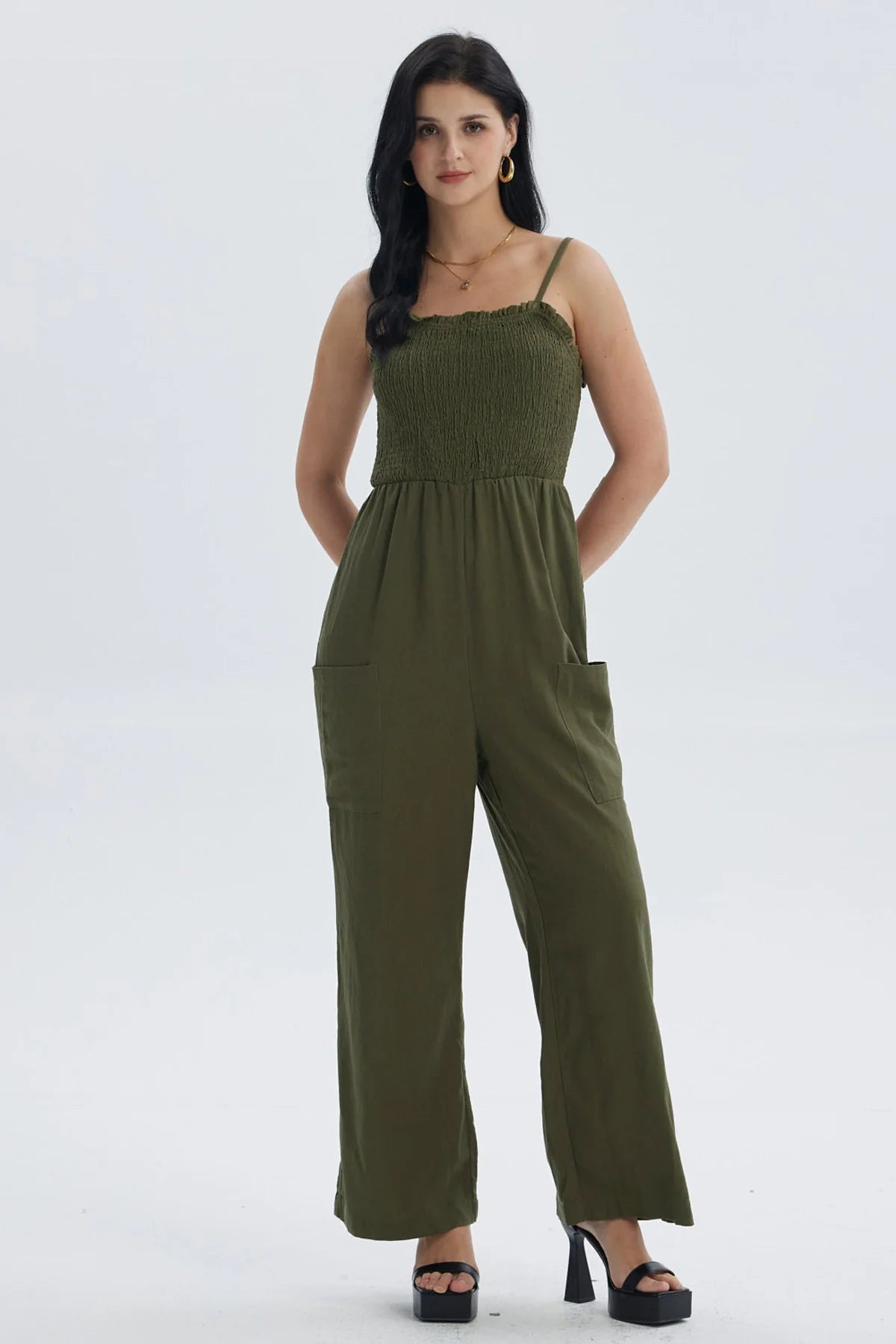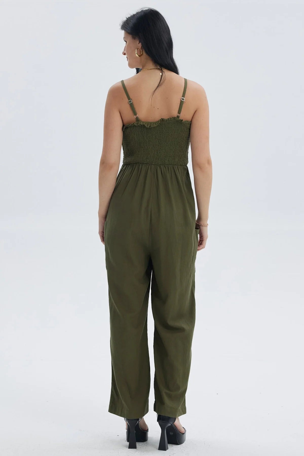 Enteritos Mujer Largo Lino Aplicación Verde Musgo
