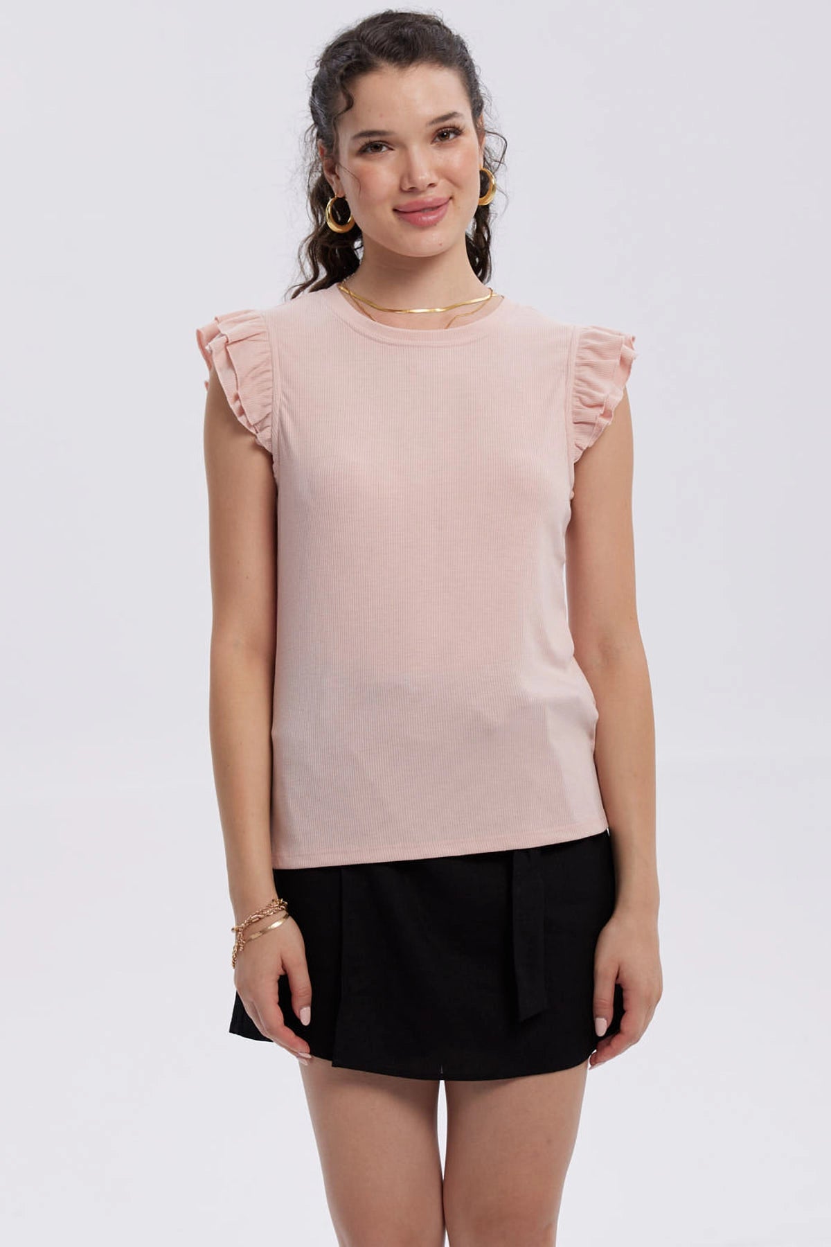 Polera Mujer Vuelos Rib Lisa Naranjo