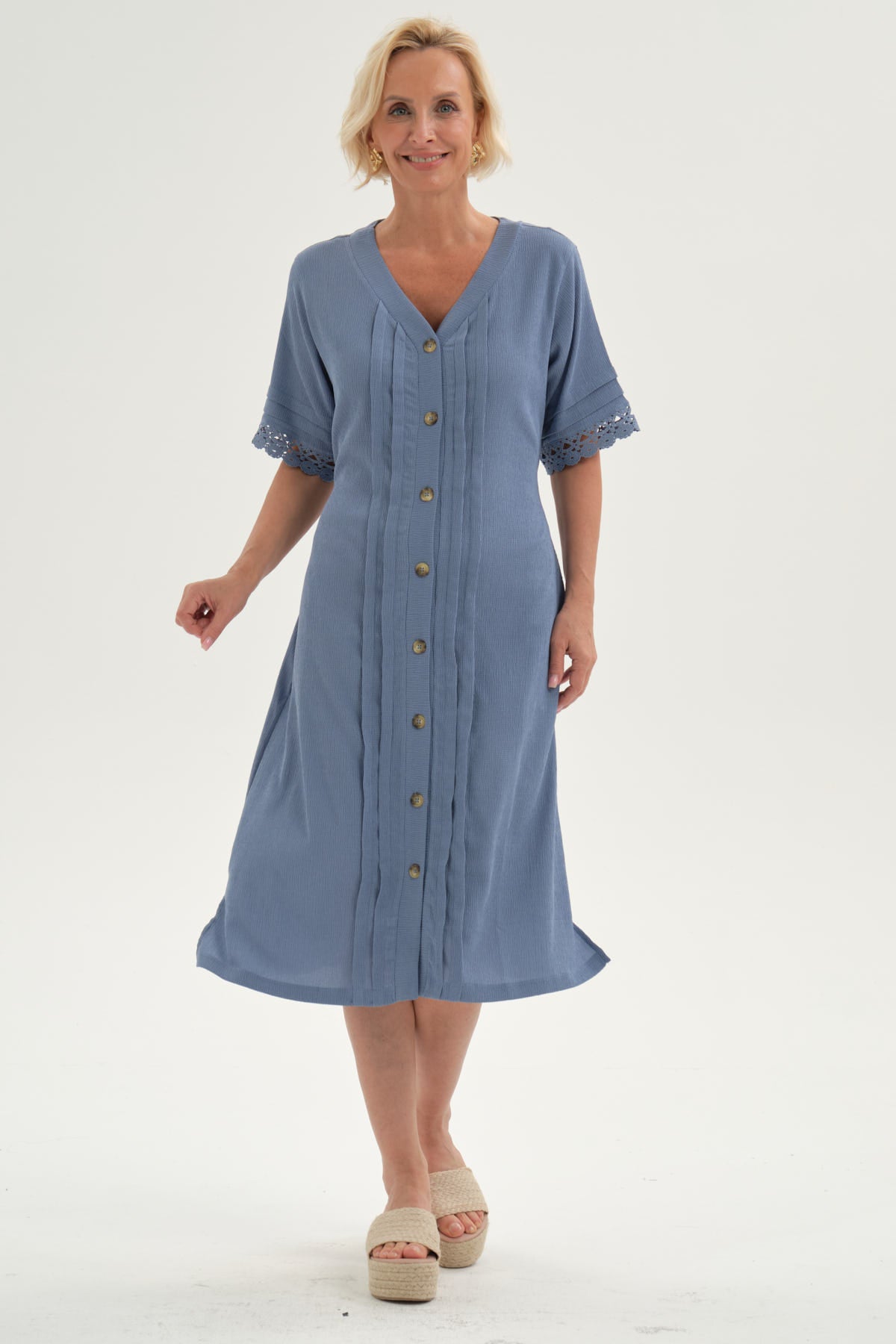 Inicio/Black Friday/Vestido Mujer Con Textura Celeste Oscuro