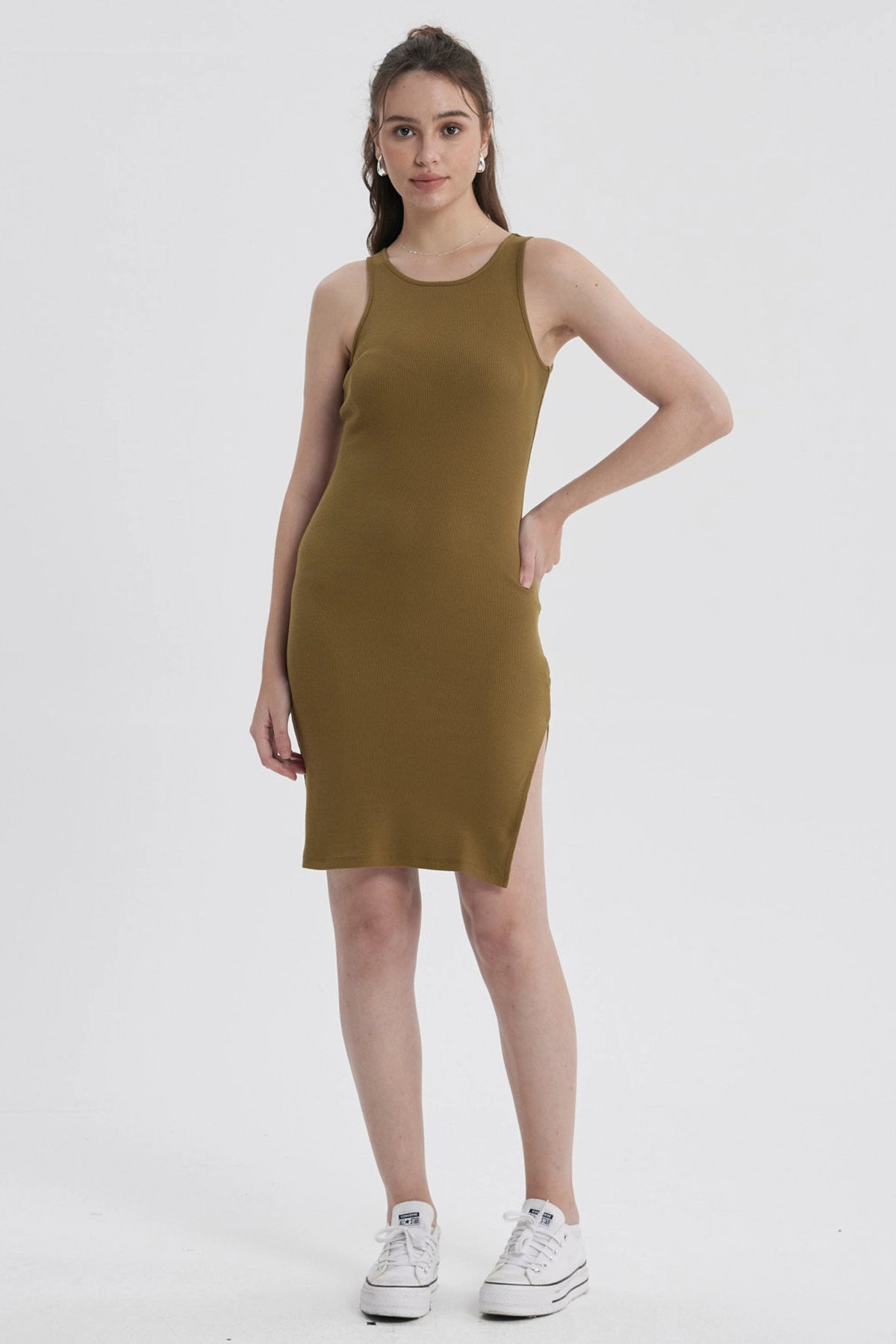 Inicio/Black Friday/Vestido Mujer Halter Midi Verde Olivo