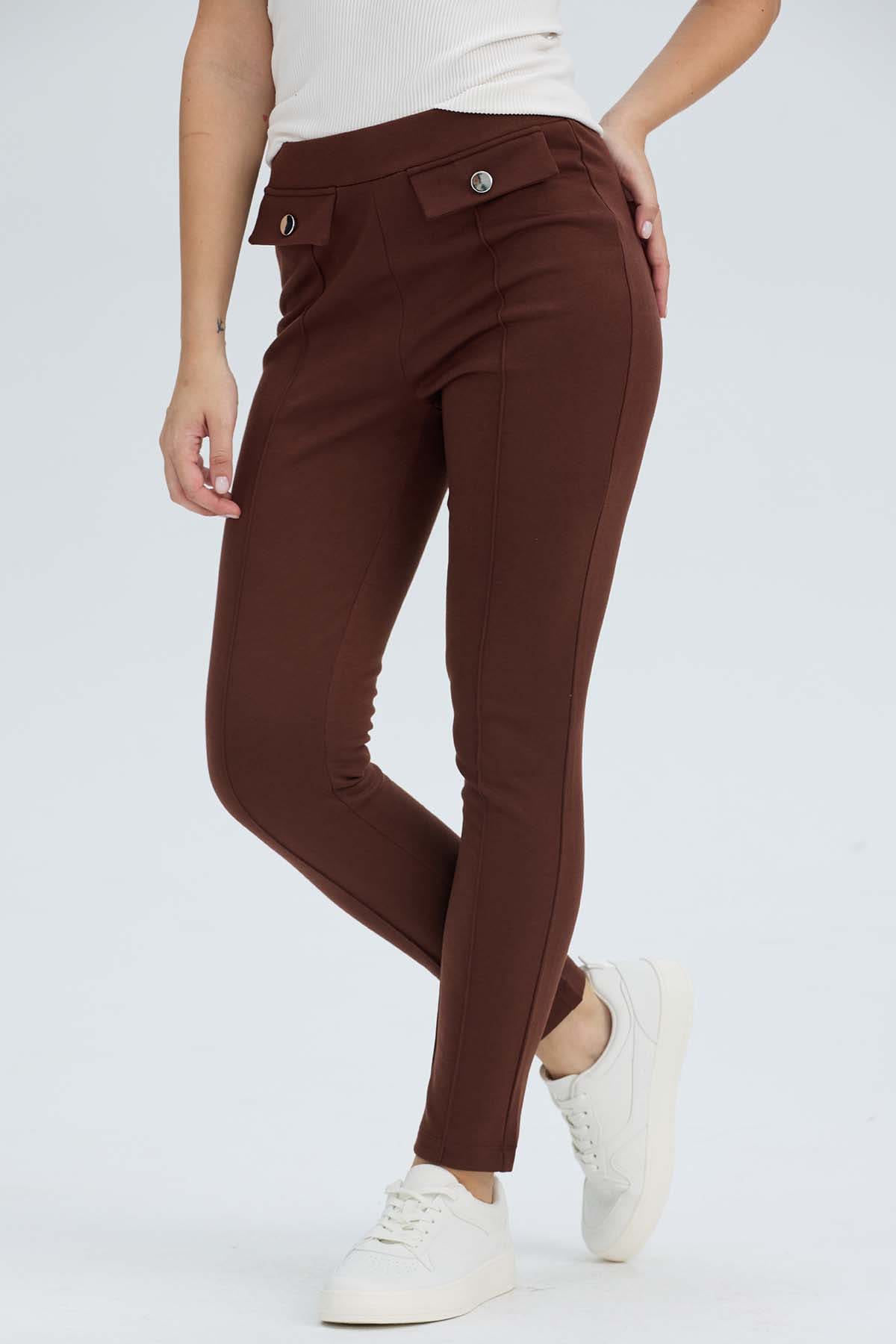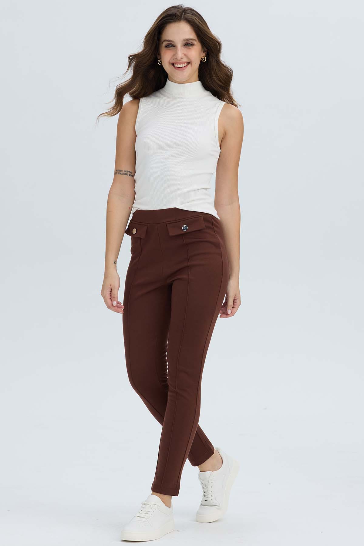 Calza Mujer Pretina Elasticada Café