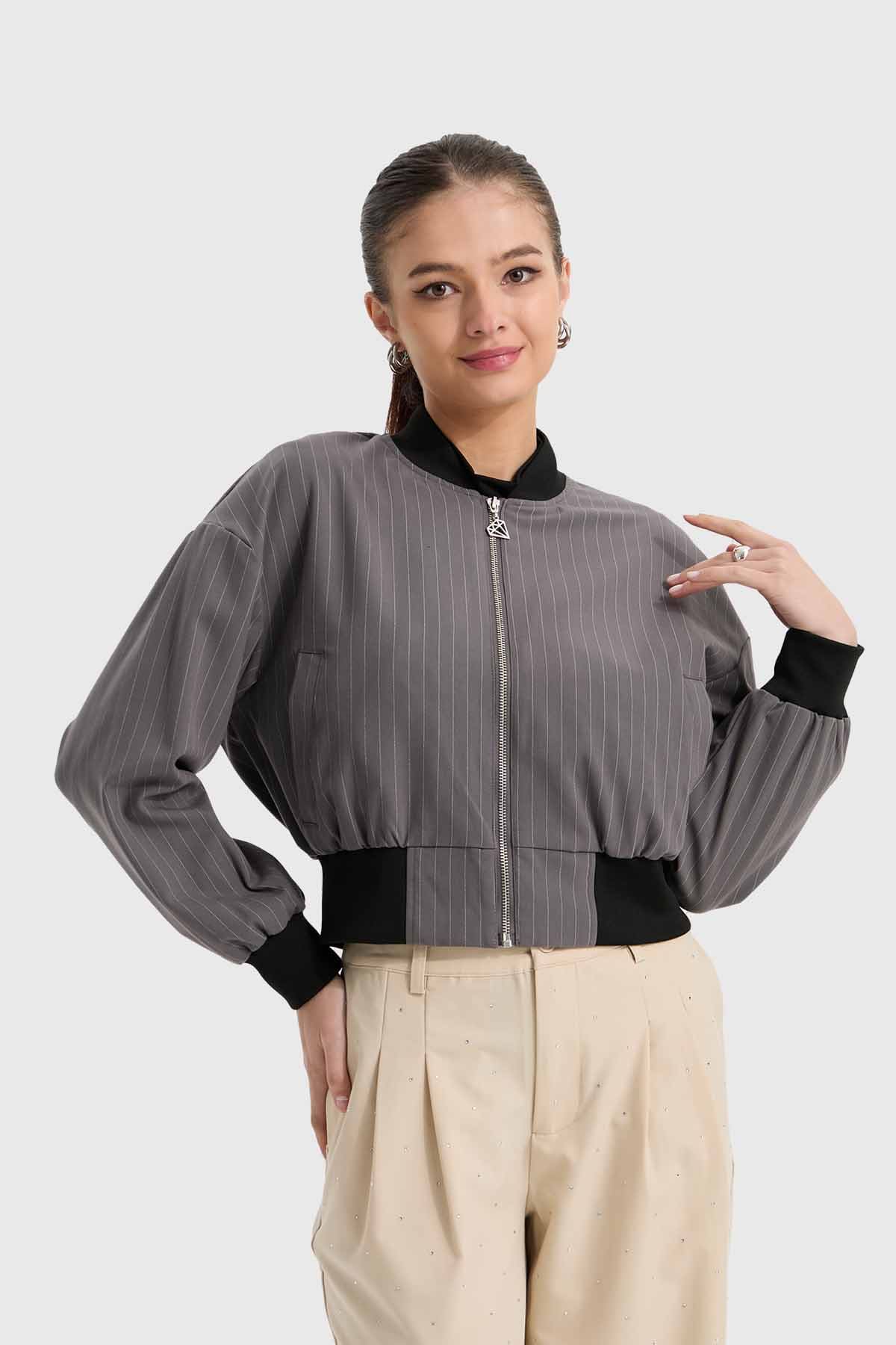 Descubre la chaqueta bomber gris perfecta para tu look diario. Confeccionada en un material suave que brinda comodidad y abrigo ligero, esta prenda destaca por su diseño moderno y elegante. Su corte ajustado y detalles en las mangas la hacen ideal para combinar con tus outfits favoritos. Siente la suavidad al usarla y renueva tu estilo con esta chaqueta que realza tu personalidad. Atrévete a lucir única y auténtica con esta chaqueta bomber que se convertirá en tu aliada en cualquier ocasión.
