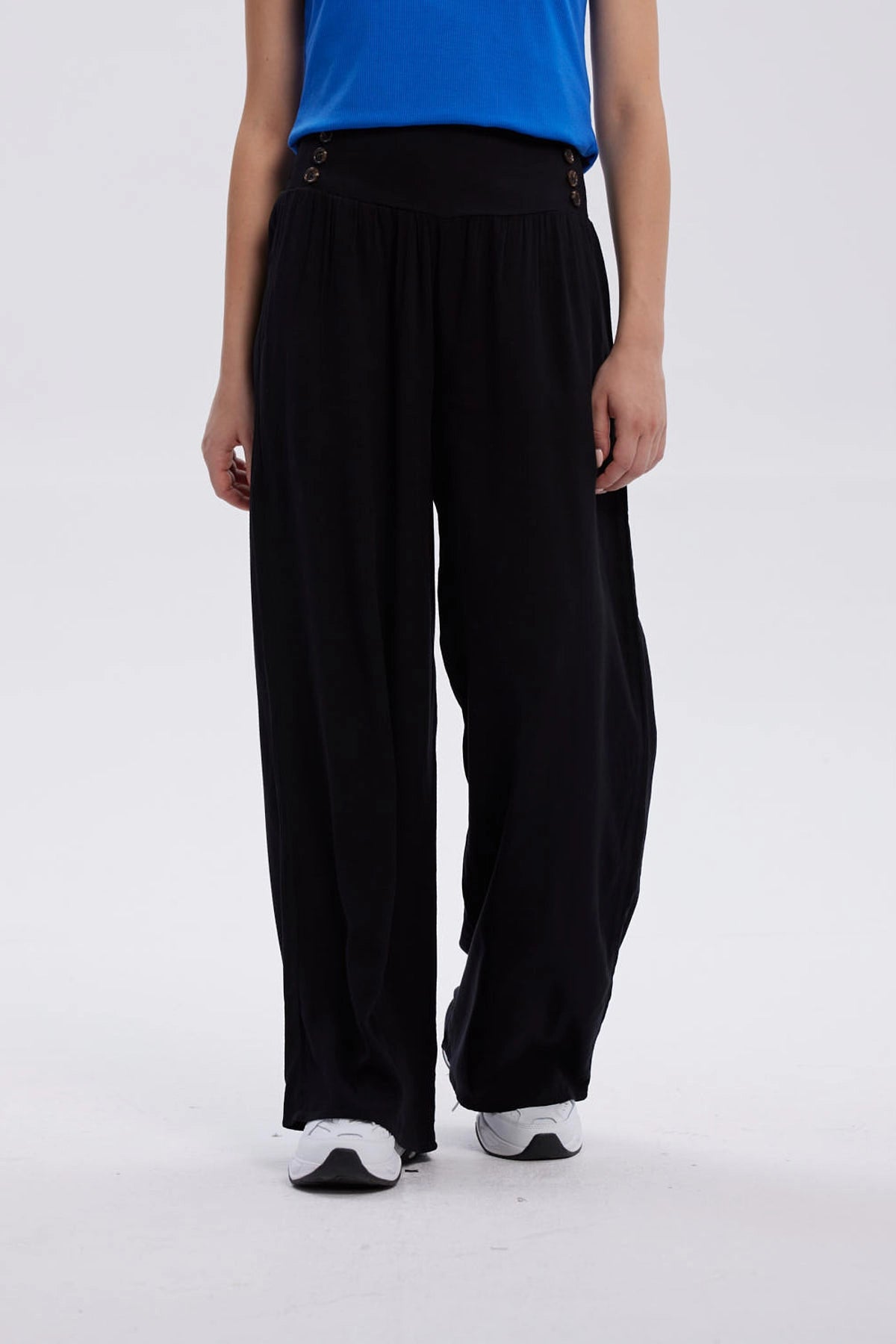 Pantalón Mujer Palazzo Aplicación Botones Negro
