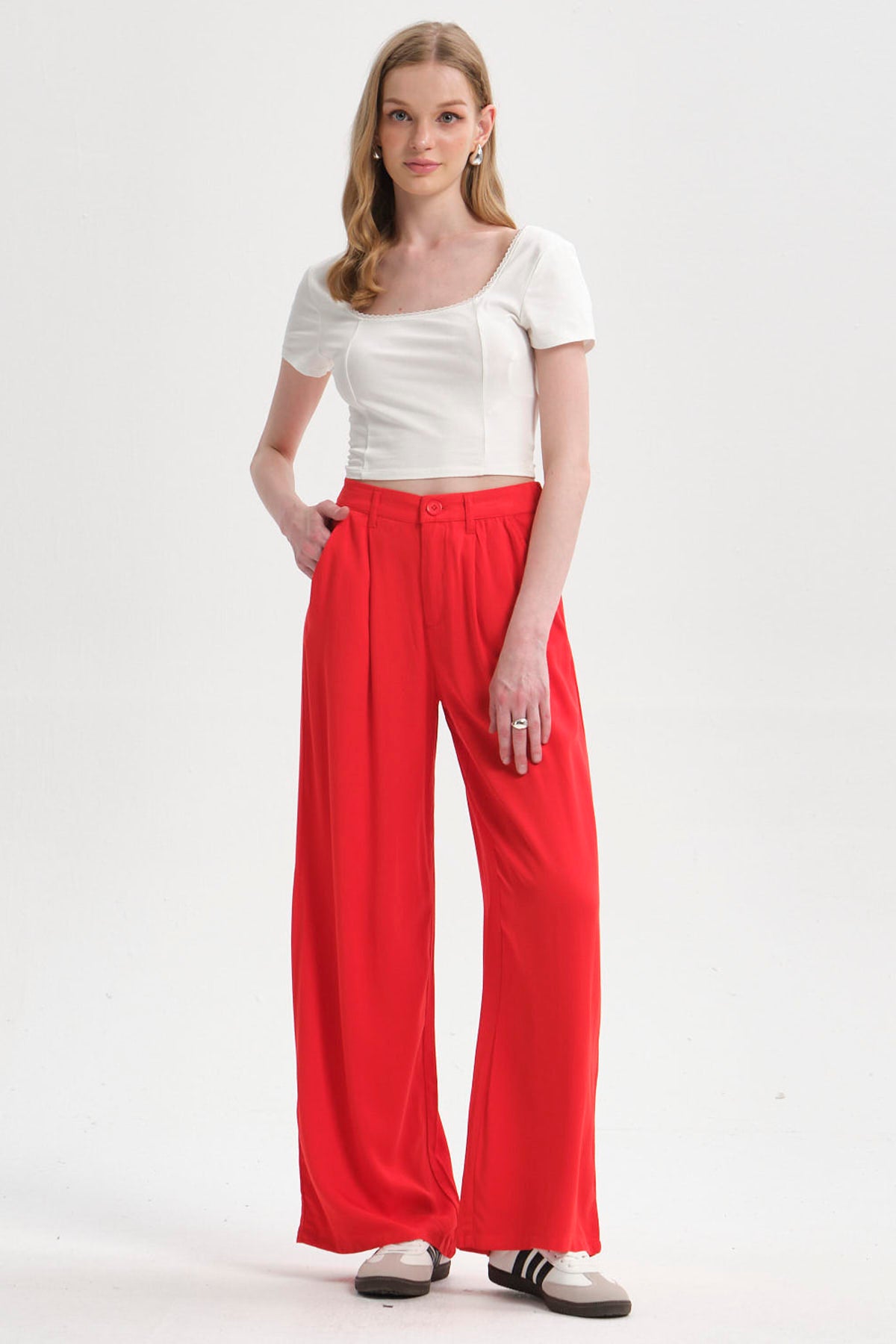 Pantalón Mujer Palazzo Sastrero Rojo