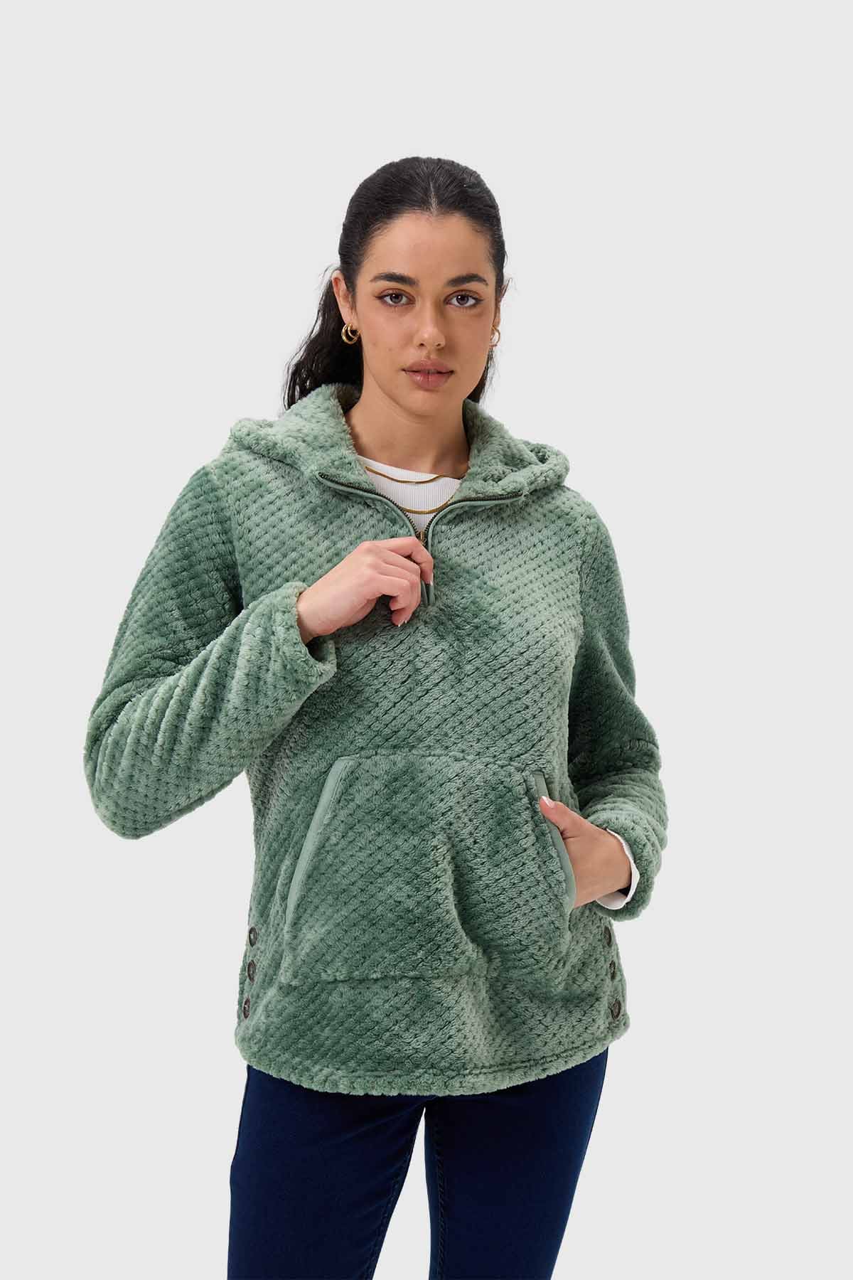 Descubre el polar mujer básico en un encantador verde musgo claro, ideal para esos días frescos. Confeccionado en un material suave y acogedor, este polar te brinda la comodidad que necesitas sin sacrificar el estilo. Su diseño sencillo y funcional incluye un práctico bolsillo frontal y un cierre que permite regular la ventilación. Perfecto para combinar con jeans o leggings, este polar se convertirá en tu aliado para lucir bien y sentirte aún mejor. Atrévete a renovar tu look con esta prenda que resalta tu personalidad y te envuelve en calidez.