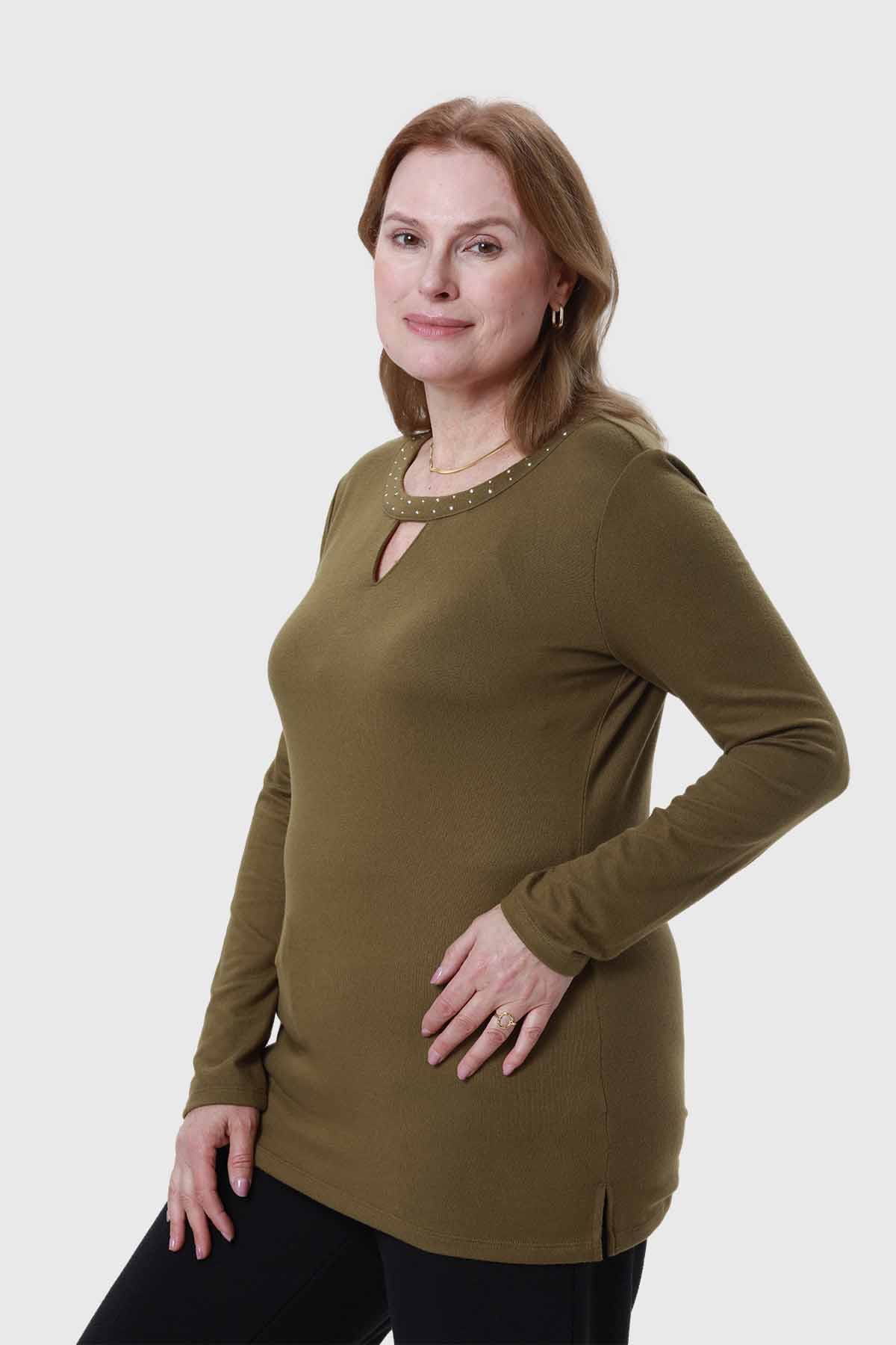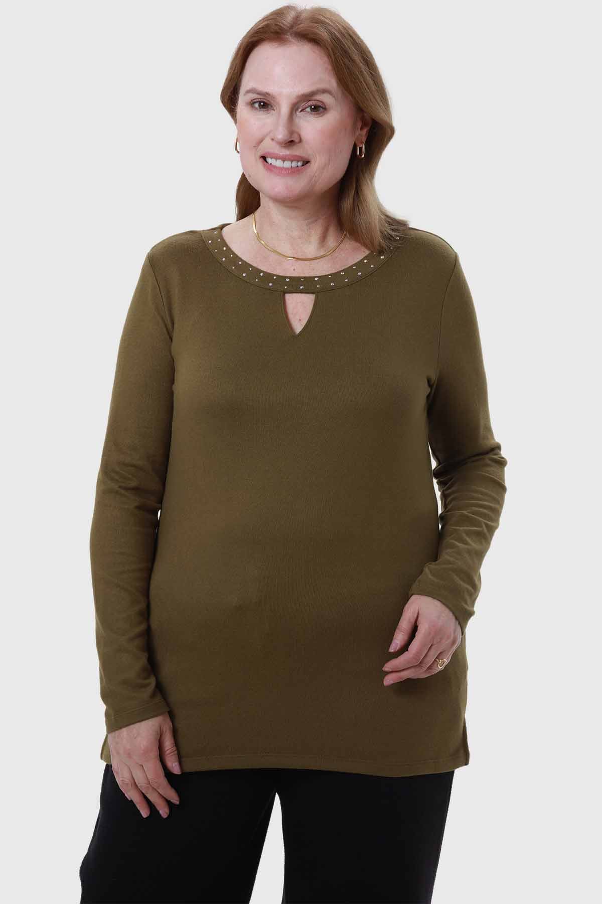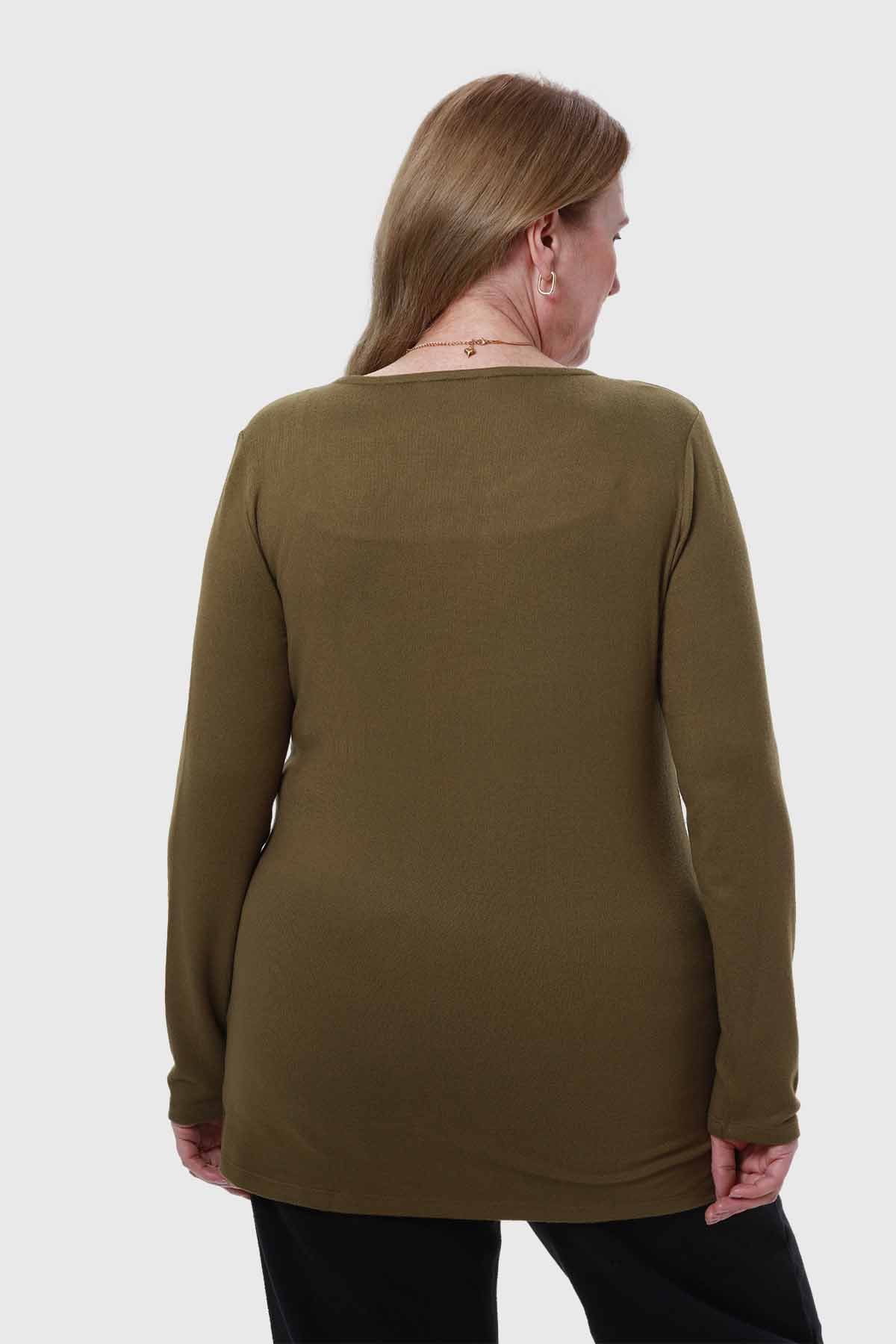 Descubre el sweater mujer Camman en un atractivo verde militar, confeccionado en suave algodón que brinda una comodidad excepcional. Su diseño clásico, con un detalle de escote en forma de lágrima, lo convierte en una prenda versátil para cualquier ocasión. Ideal para esos días frescos, su textura ligera te envolverá en abrigo sin sacrificar el estilo. Combínalo con tus jeans favoritos o una falda para un look moderno y chic. Este sweater es perfecto para realzar tu identidad personal y destacar tu estilo único. ¡Atrévete a lucirlo y siéntete increíble!