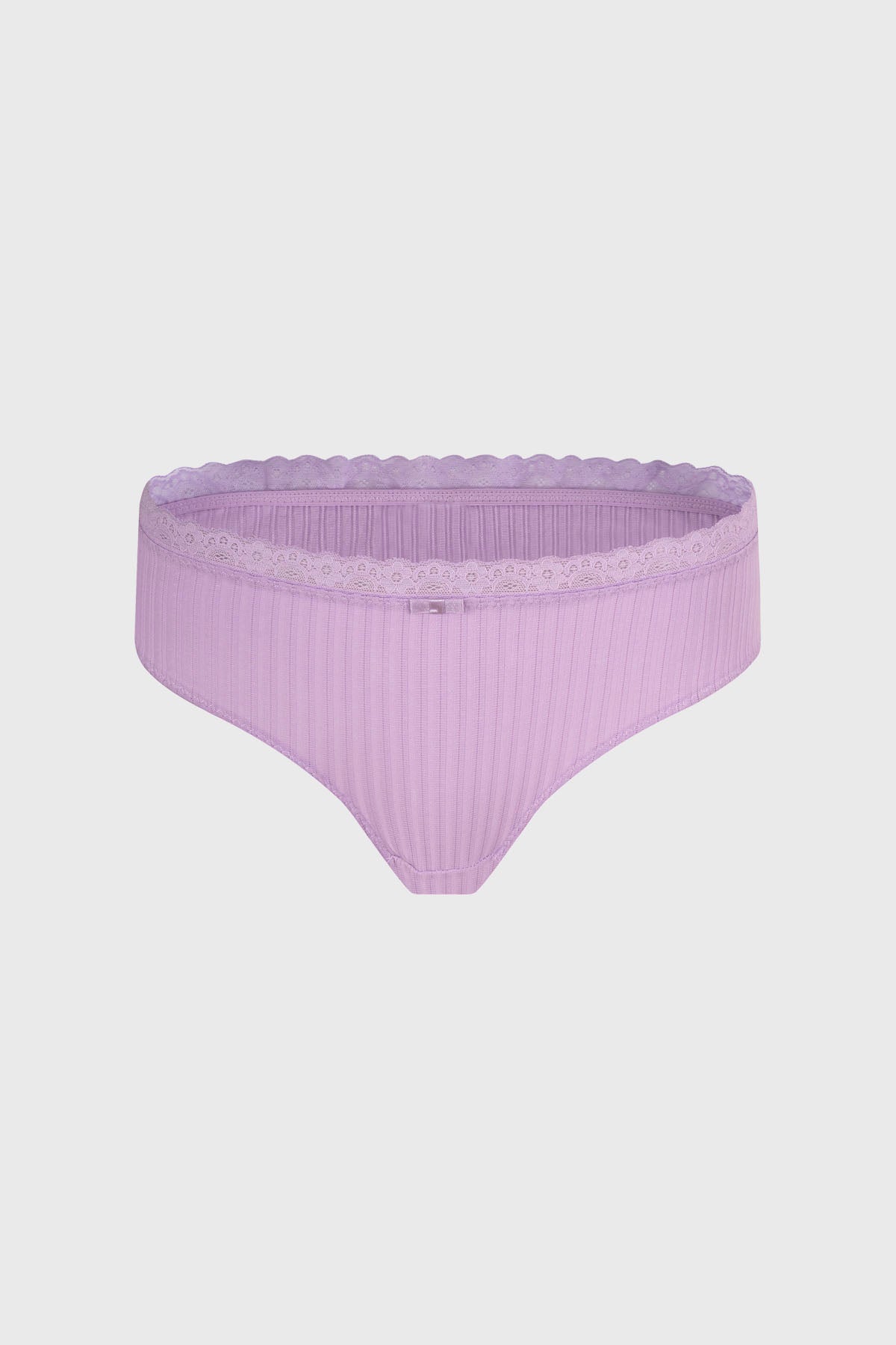 Calzón de mujer lila con encaje en la cintura y textura acanalada