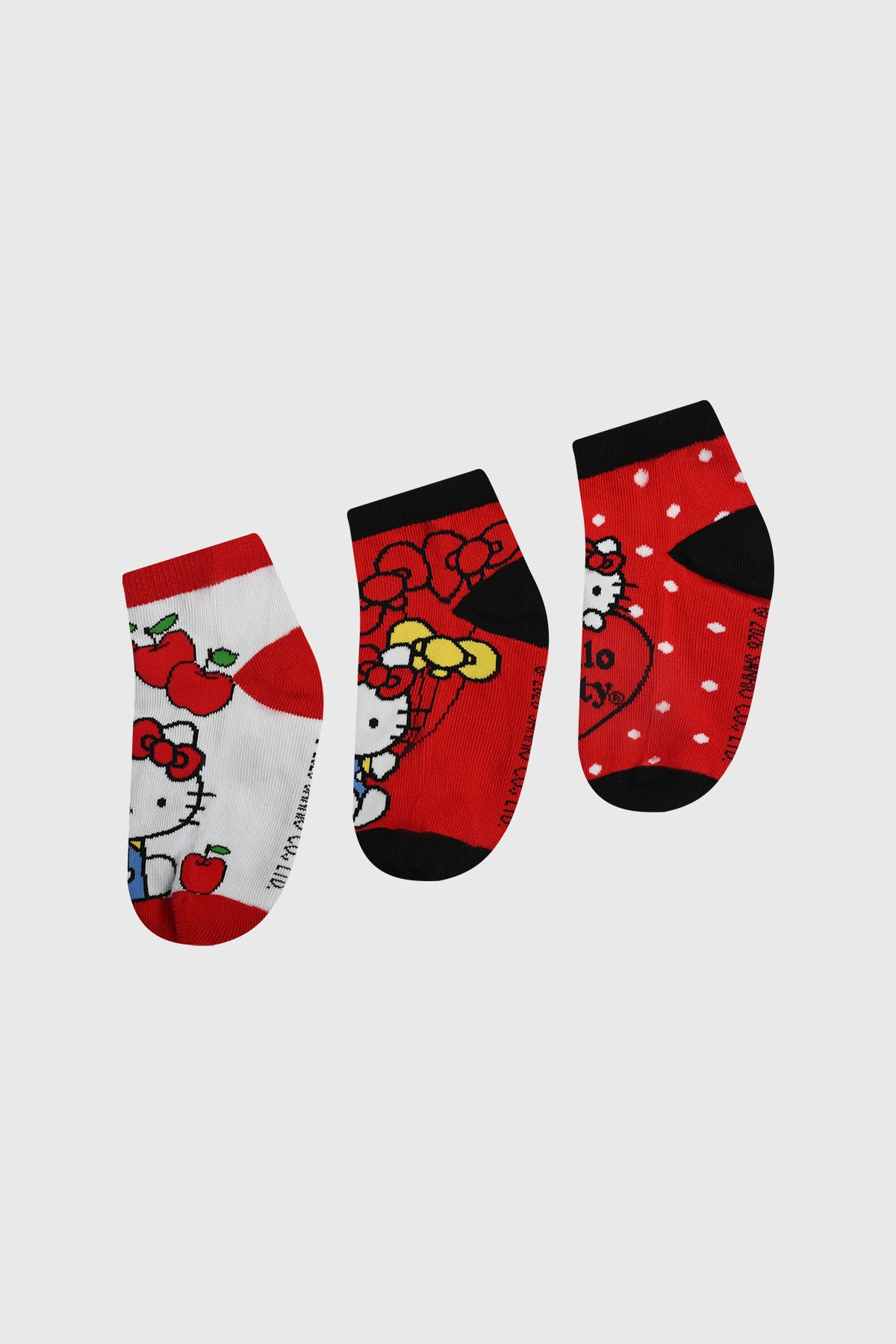 Calceta deportiva niña tripack roja con estampado de Hello Kitty en diferentes escenas gráfico colorido y divertido