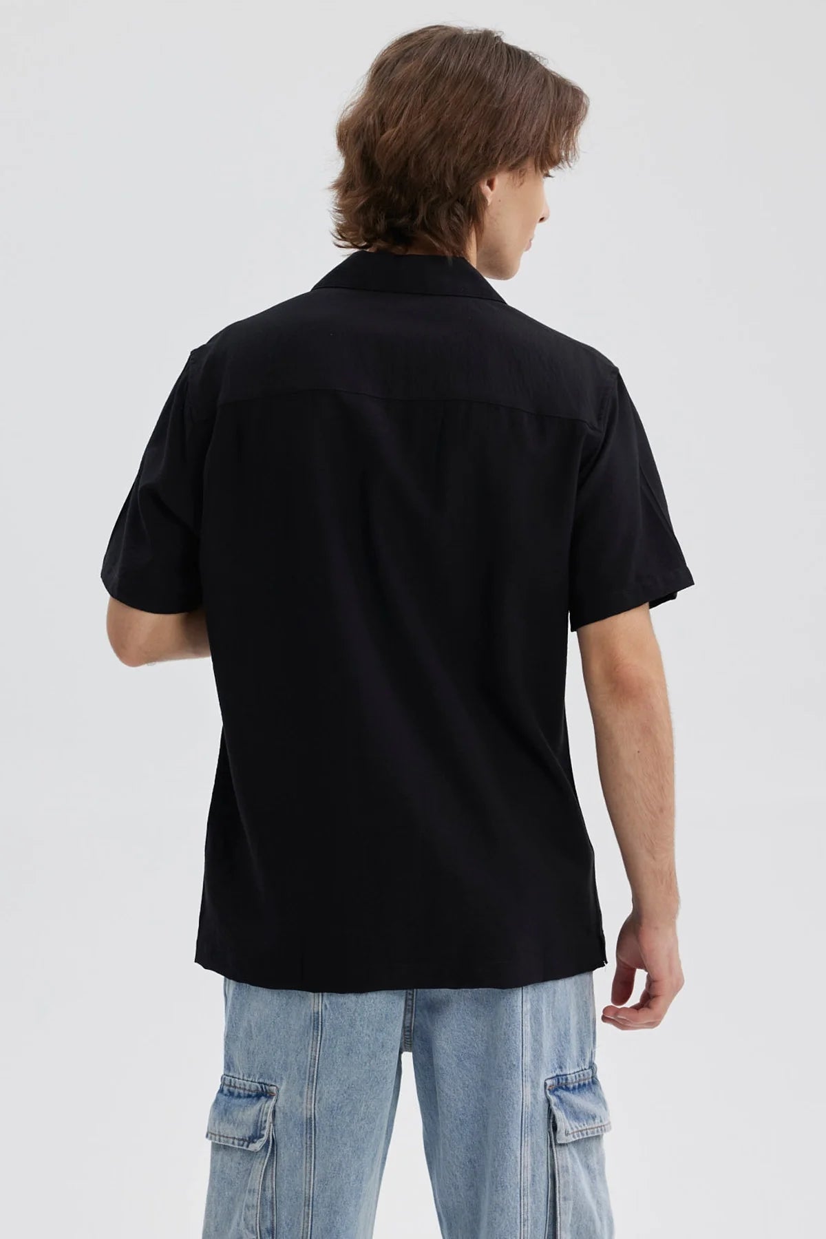 Esta camisa negra para hombre ofrece un estilo sencillo y elegante con su diseño liso y un práctico bolsillo en el pecho. El cuello clásico y la caída suave del tejido aseguran comodidad y un ajuste relajado. Ideal para una salida casual o una tarde con amigos, esta prenda combina a la perfección con jeans claros y zapatillas blancas para un look fresco y juvenil. Su versatilidad permite integrarla fácilmente en tu vestuario cotidiano.