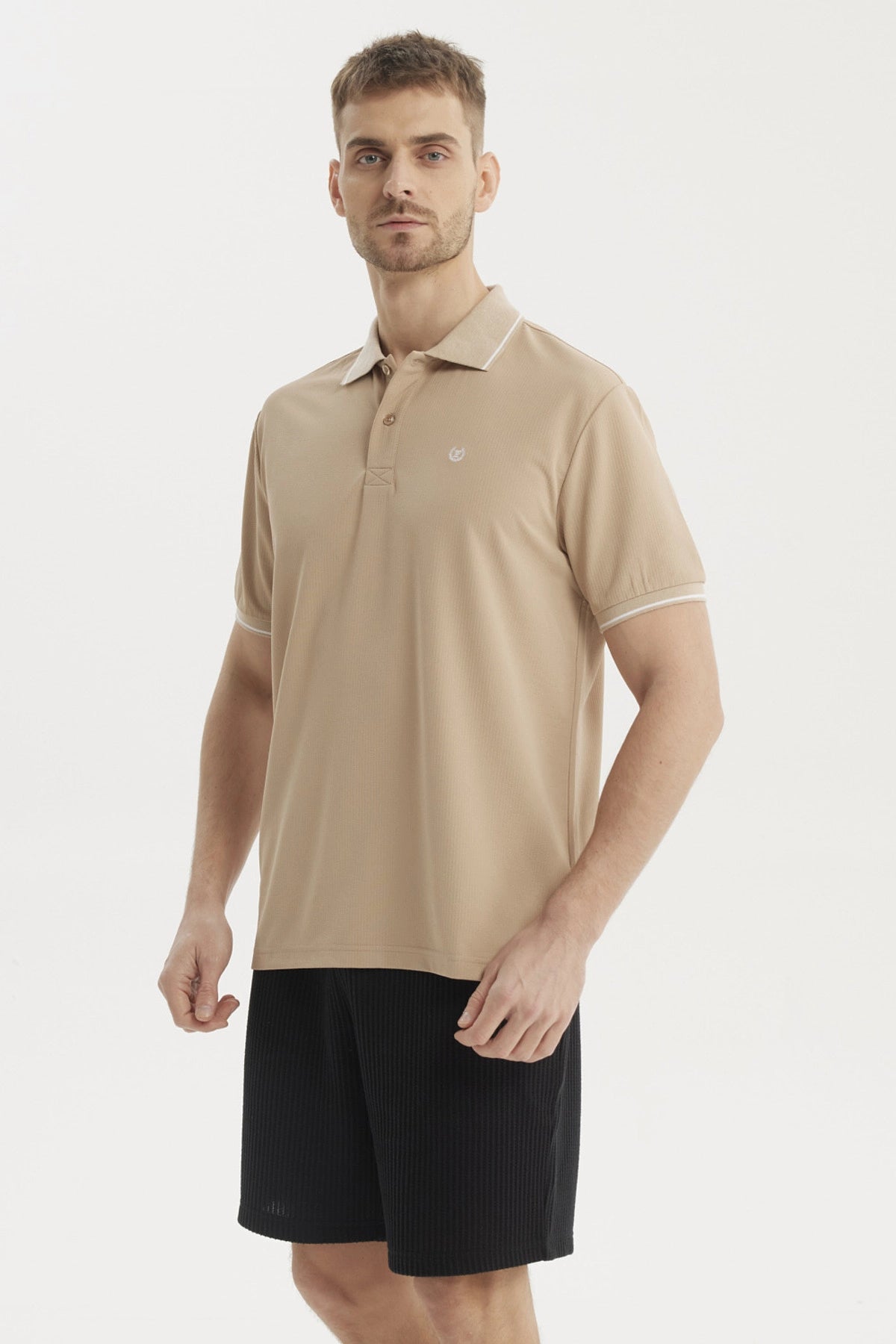 Inicio/Poleras Hombre/Polera Hombre Slim Cuello Camisero Beige