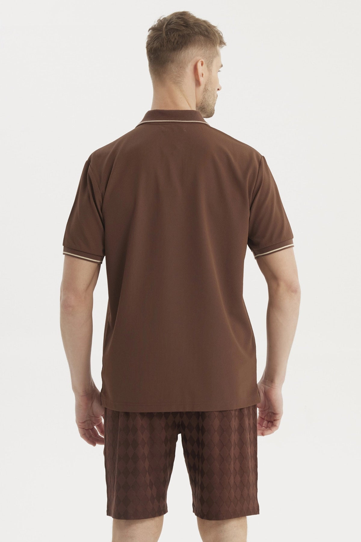 Polera Hombre Slim Cuello Camisero Chocolate