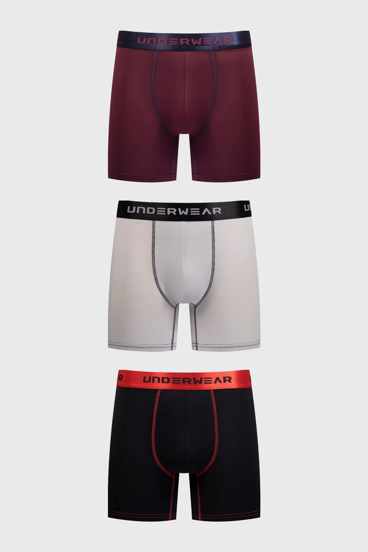 Boxer Hombre Tripack Pretina Burdeo
