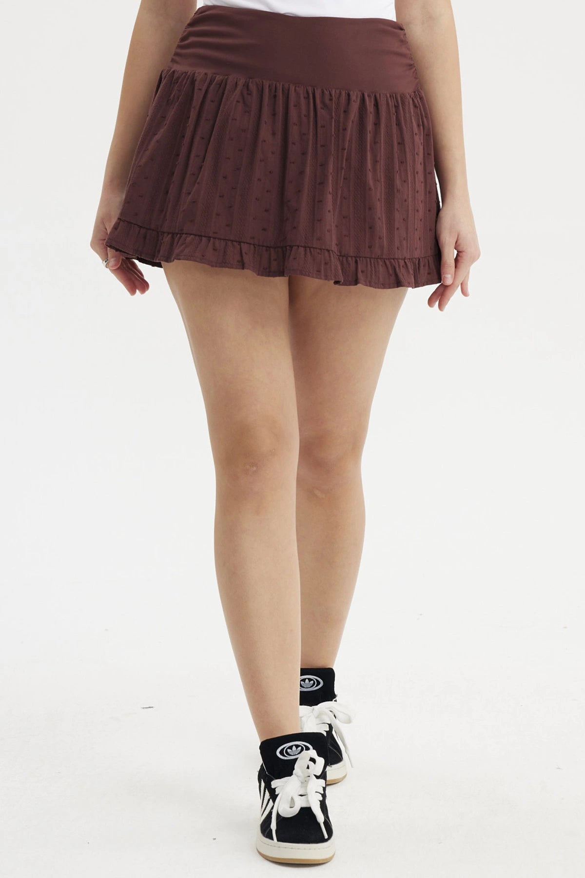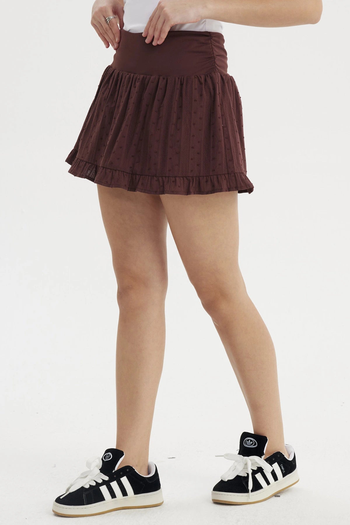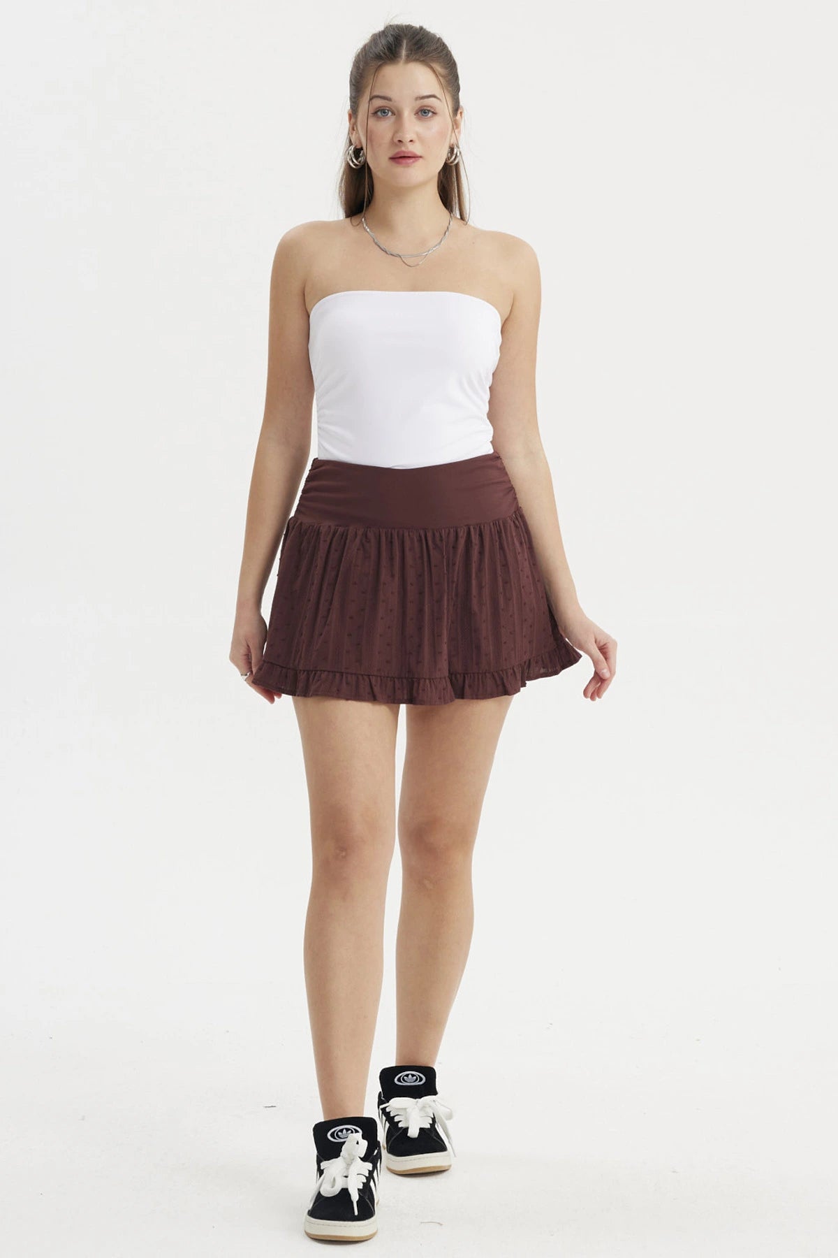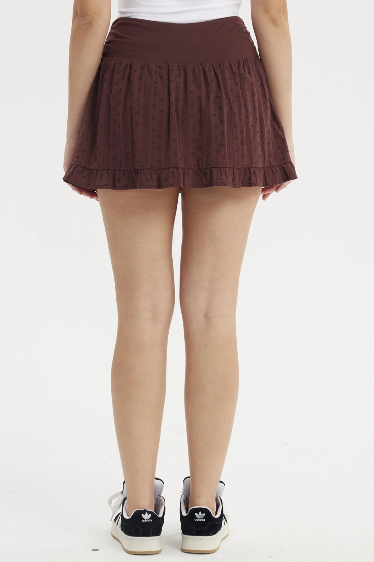 Falda Mujer Pretina Alta Basta Vuelos Café