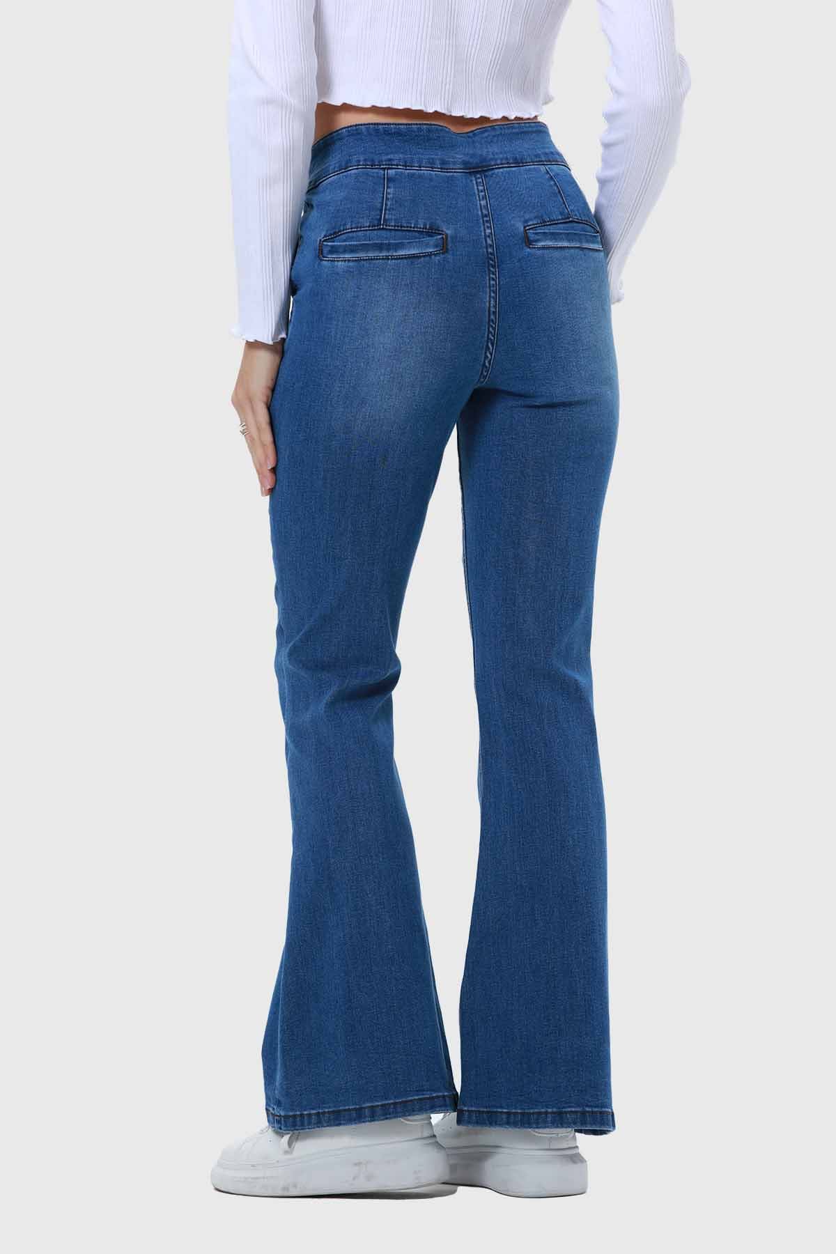 Descubre los jeans flare para mujer en un atractivo tono azul. Confeccionados en suave algodón, estos jeans ofrecen comodidad y un ajuste perfecto. Su diseño moderno y línea media realza la figura, mientras que el corte acampanado aporta un toque único a tu look. Ideales para combinar con tus blusas favoritas, estos jeans son perfectos para cualquier ocasión. Siente la suavidad del material y la libertad de movimiento que te brindan. Atrévete a renovar tu estilo y destaca tu personalidad con esta prenda esencial en tu guardarropa.