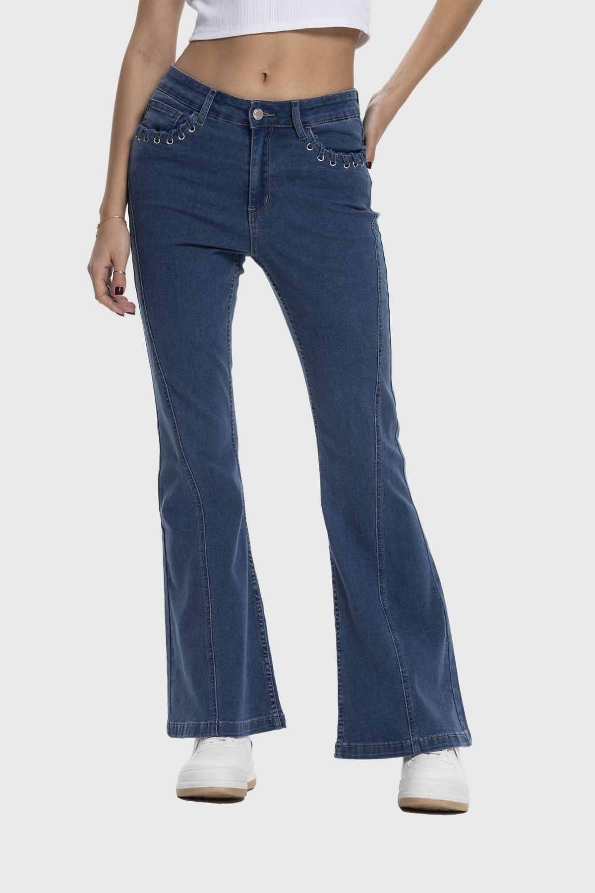 Descubre los jeans flare ojetillo azul, una prenda que combina comodidad y estilo. Hechos de algodón suave, estos jeans ofrecen una sensación ligera y agradable al tacto. Su diseño con ojetillos en los bolsillos le da un toque único y moderno, ideal para cualquier ocasión. Perfectos para lucir un look fresco y renovado, estos jeans son la elección ideal para la mujer que busca destacar su personalidad. Atrévete a ser tú misma y siente la confianza que solo un buen par de jeans puede ofrecerte.