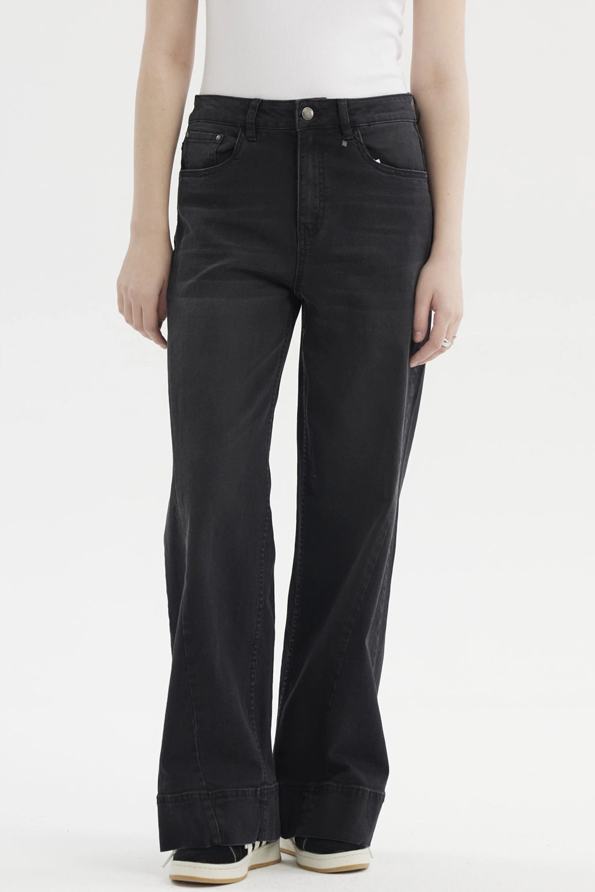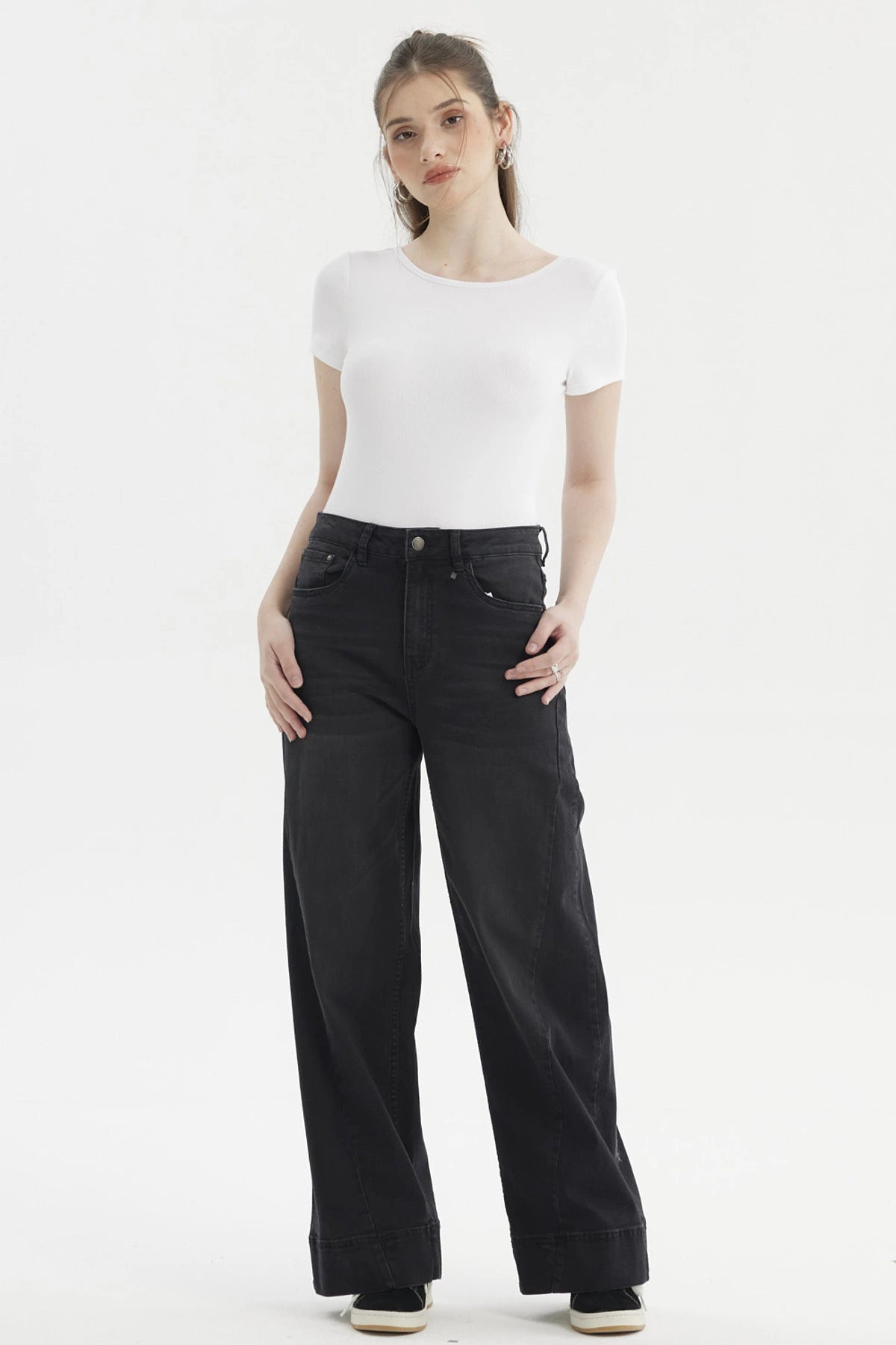 Jeans Mujer Wide Leg Diagonal Negro