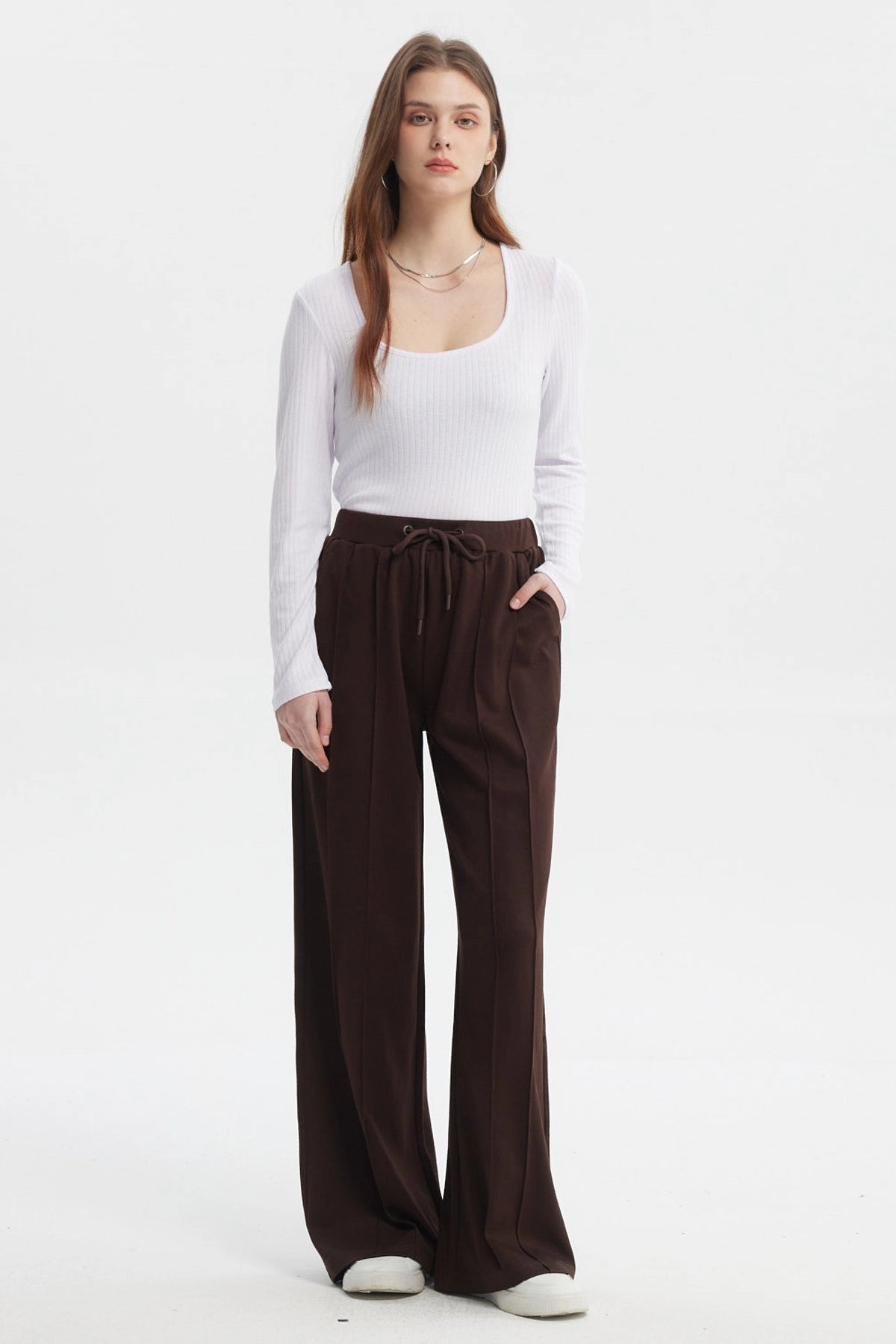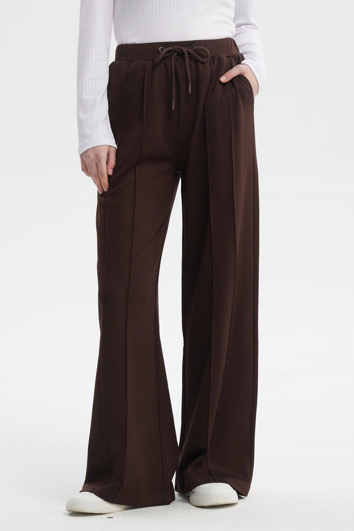 Pantalón Mujer Sastrero Pretina Cordón Café Oscuro