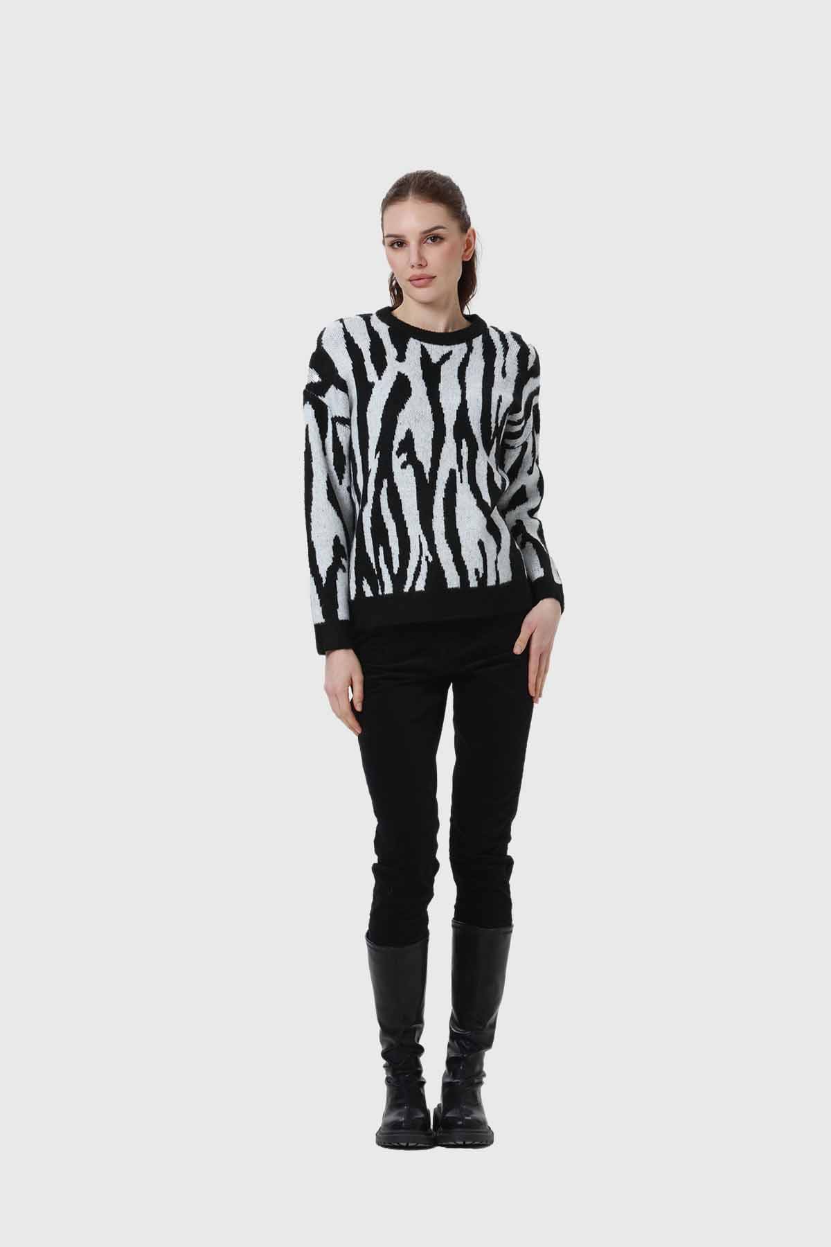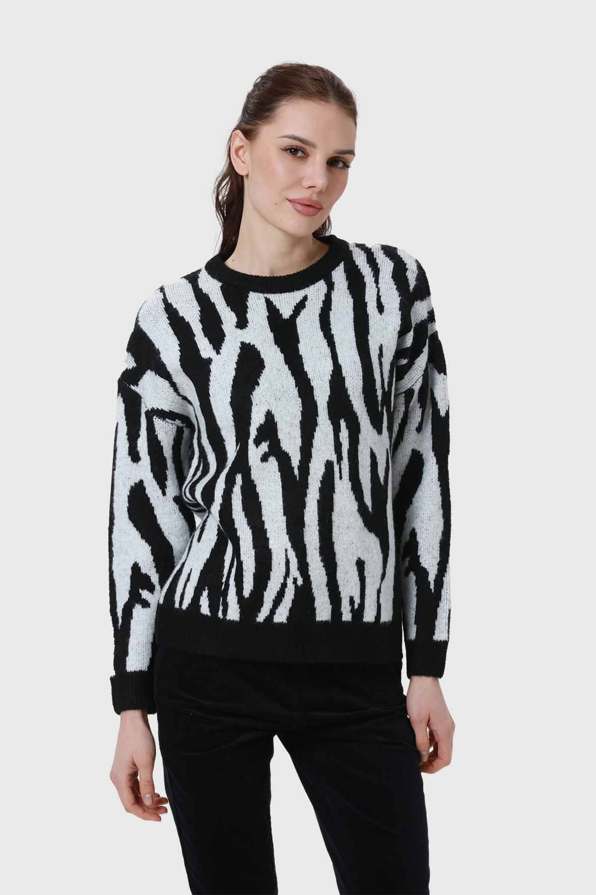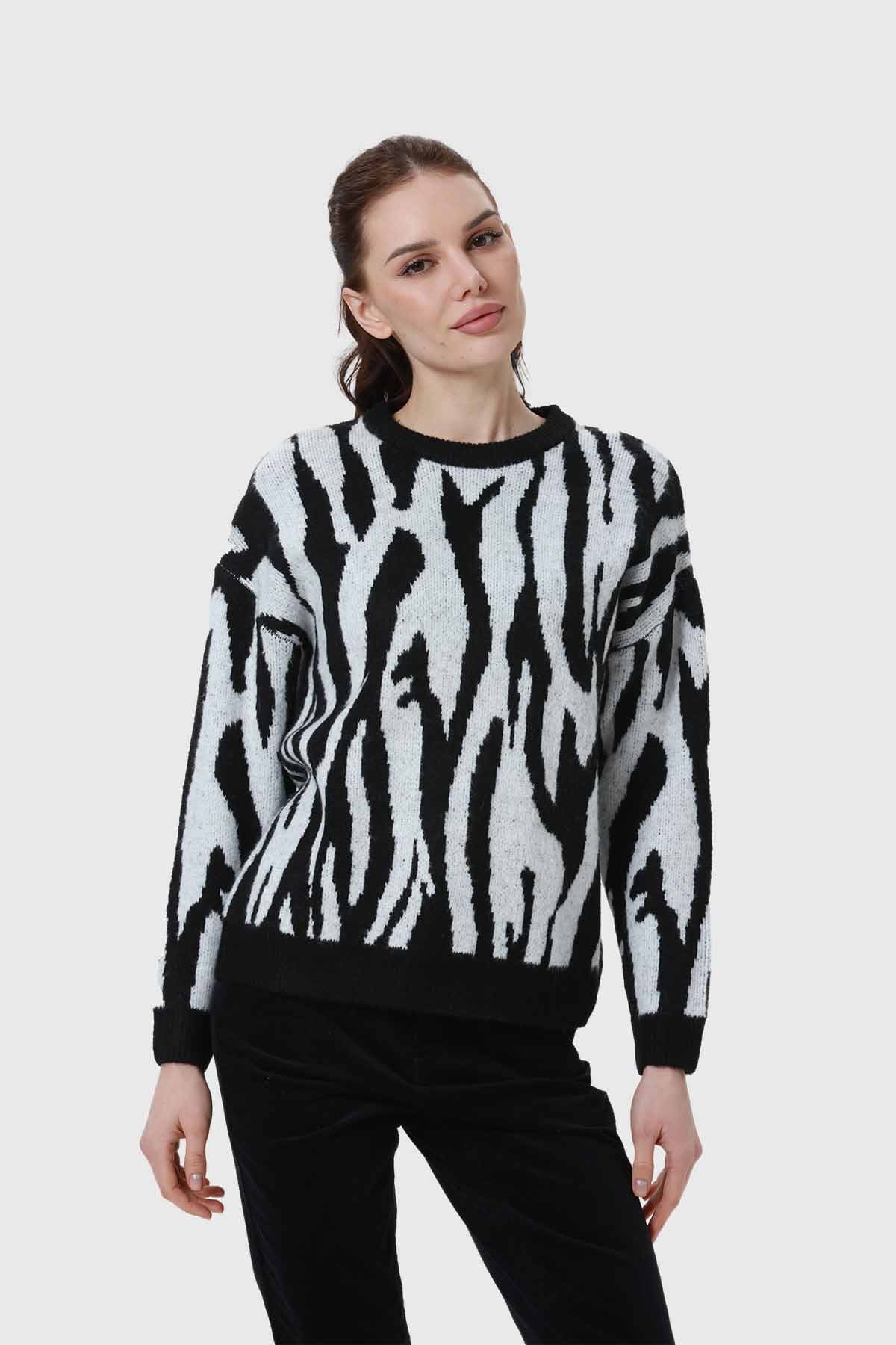 Descubre el sweater perfecto para tu look diario. Este sweater de mujer en color negro y blanco destaca por su diseño de estampado animal, que le da un toque moderno y atrevido. Hecho de un material suave y ligero, te brinda la comodidad que necesitas para tus días. Su textura agradable al tacto y su calidez lo convierten en una prenda ideal para cualquier ocasión. Combínalo con jeans o una falda y siéntete única y segura. Este sweater no solo es una prenda, es una declaración de estilo que resalta tu personalidad. Atrévete a lucirlo y renueva tu guardarropa con esta pieza esencial.