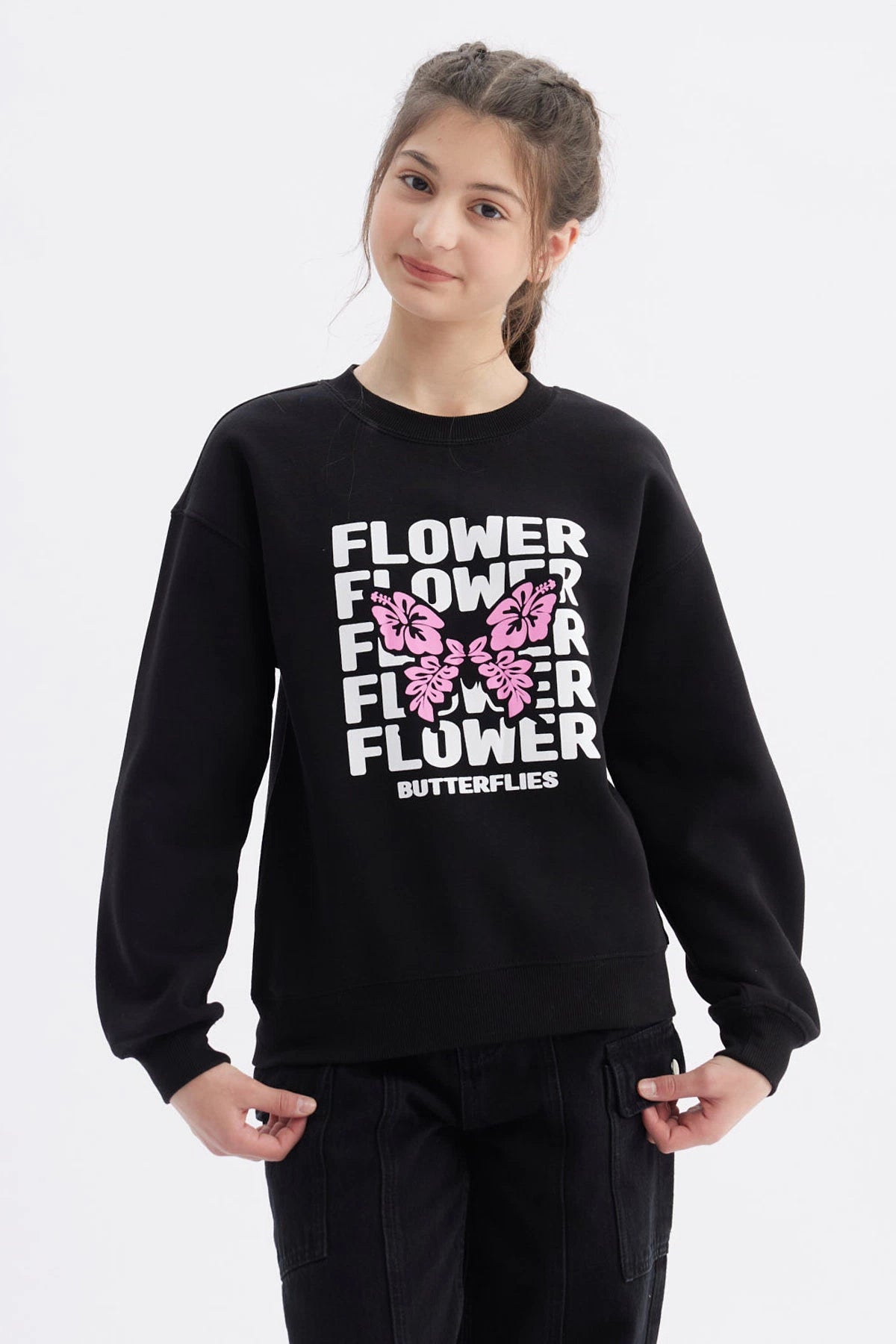 Inicio/Polerones Teen Niña/Polerón Niña Básico Print Negro