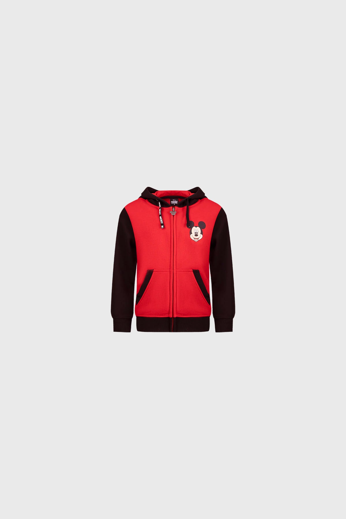 Polerón niño rojo con capucha y estampa de Mickey Mouse de Disney en el pecho