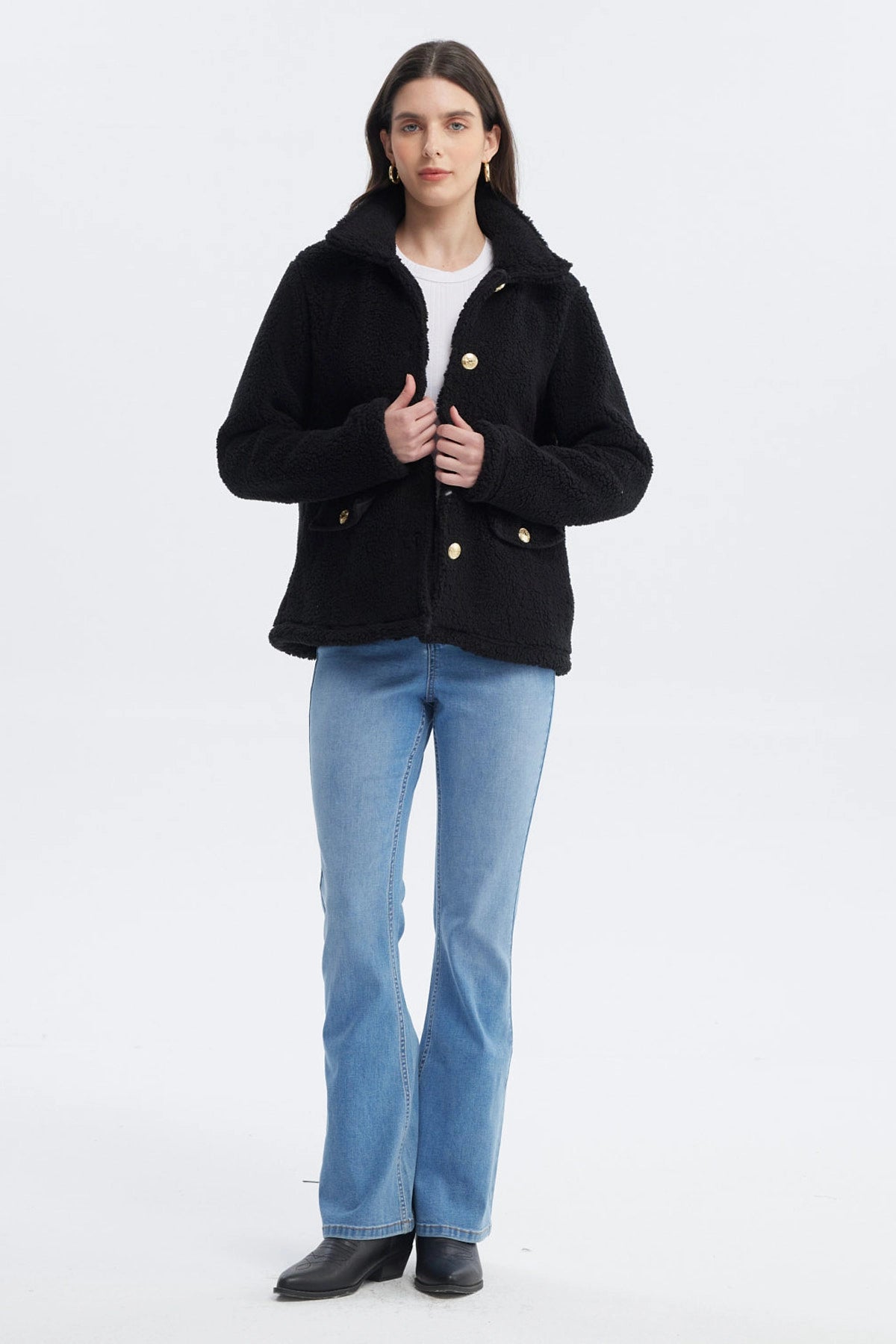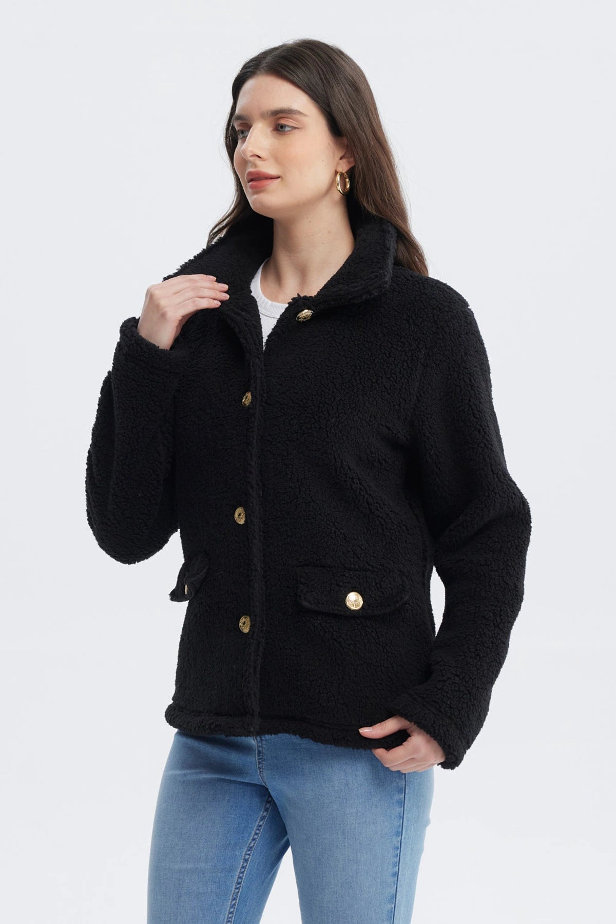 Polar Mujer Cuello Camisero Negro