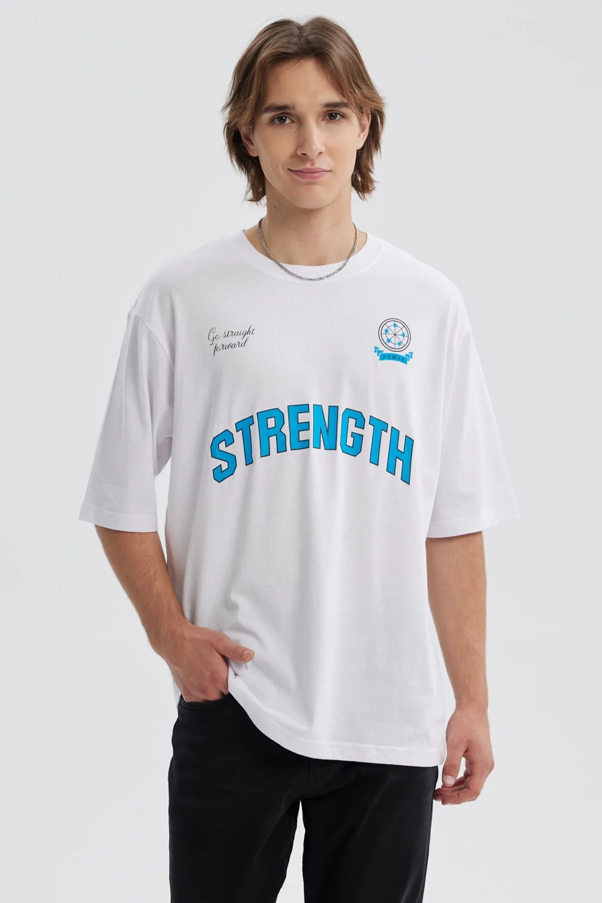 Esta polera blanca para hombre destaca por su diseño estampado que transmite fuerza y estilo. Confeccionada en un suave algodón, ofrece una sensación cómoda y ligera, ideal para un look casual y desenfadado. Perfecta para un día relajado con amigos o un paseo por la ciudad. Combínala con jeans oscuros y zapatillas blancas para un estilo fresco y moderno.