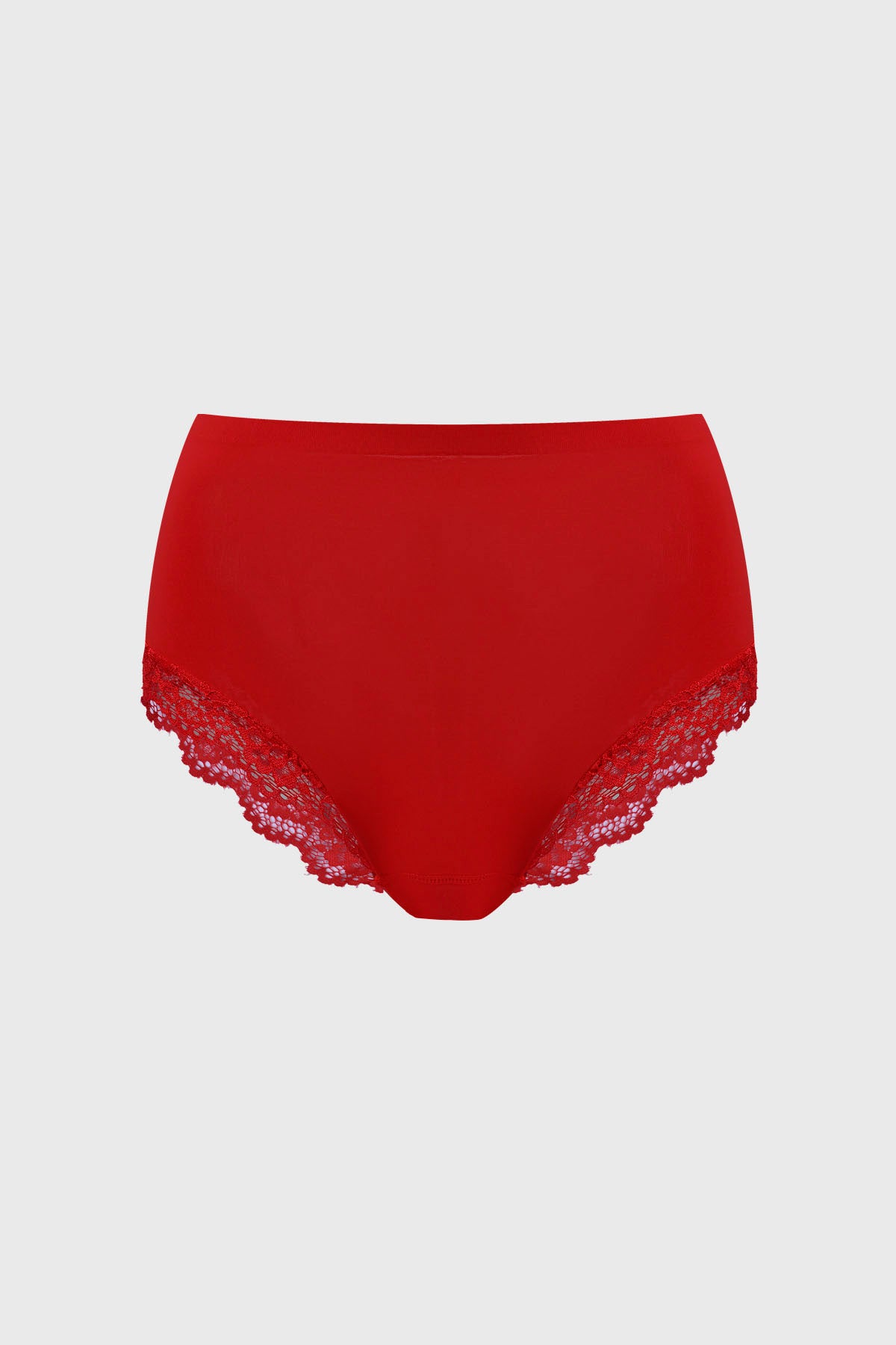 Calzón Mujer Tiro Alto Detalle Encaje Rojo