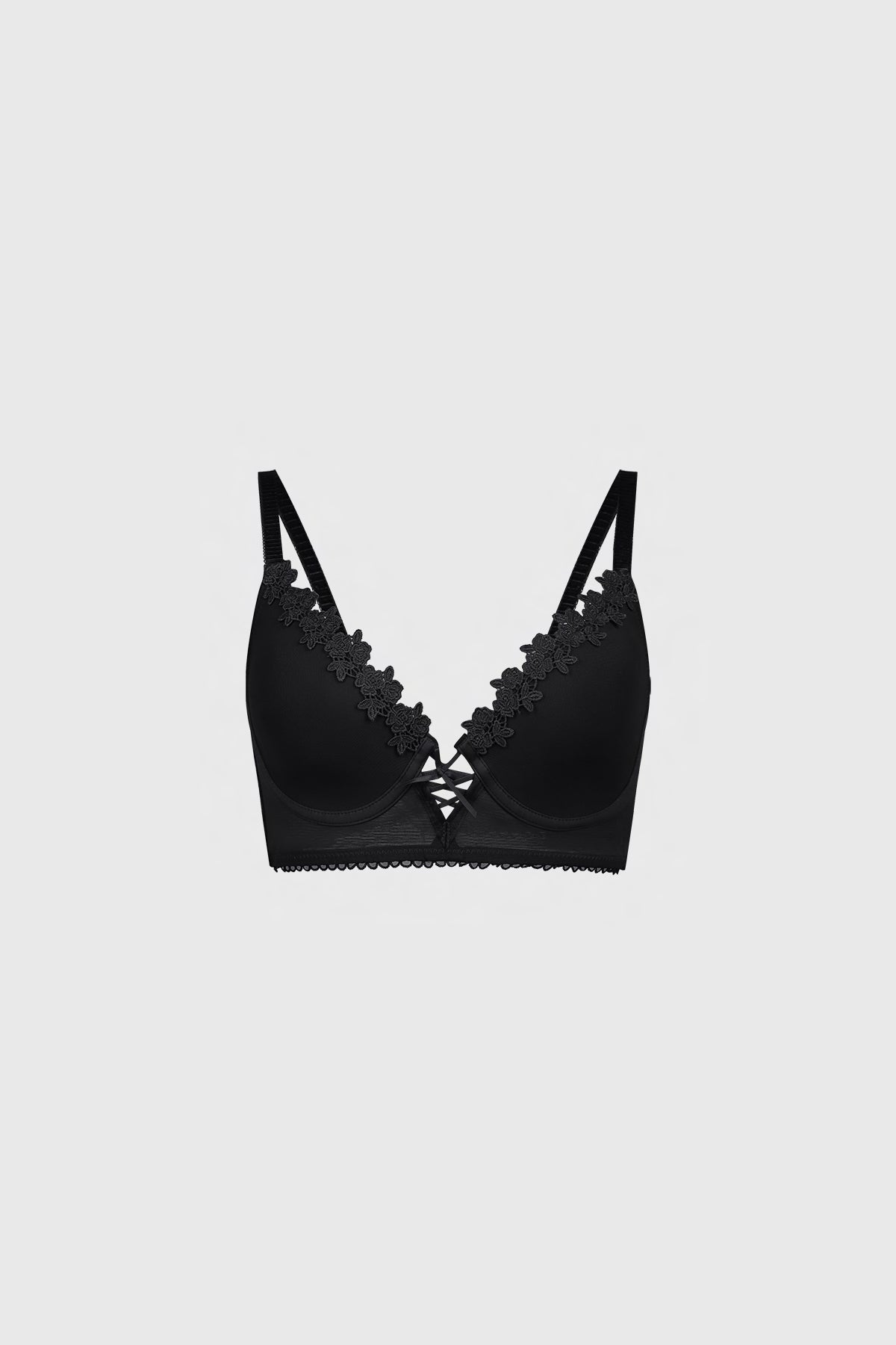 Sostén Mujer Mesh Detalle Macramé Negro