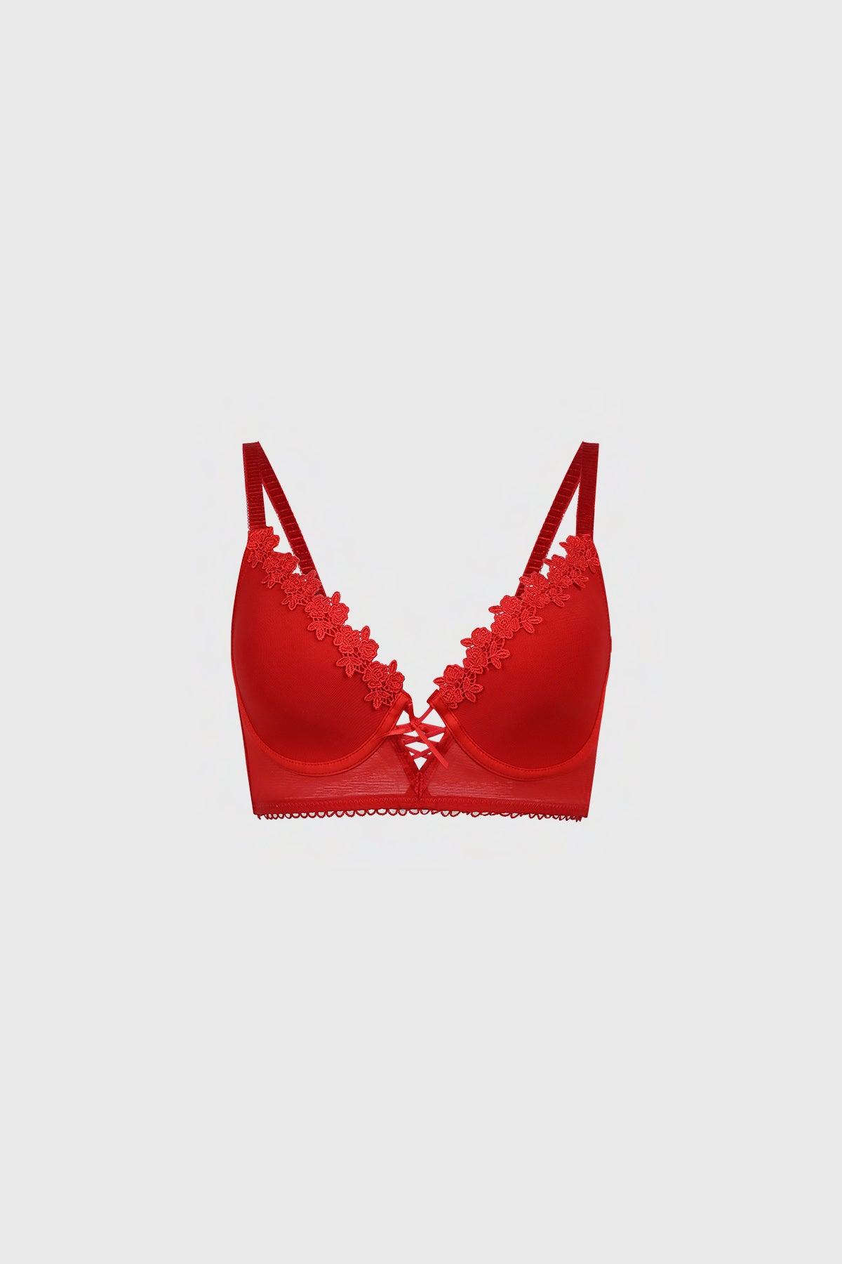 Sostén Mujer Mesh Detalle Macramé Rojo