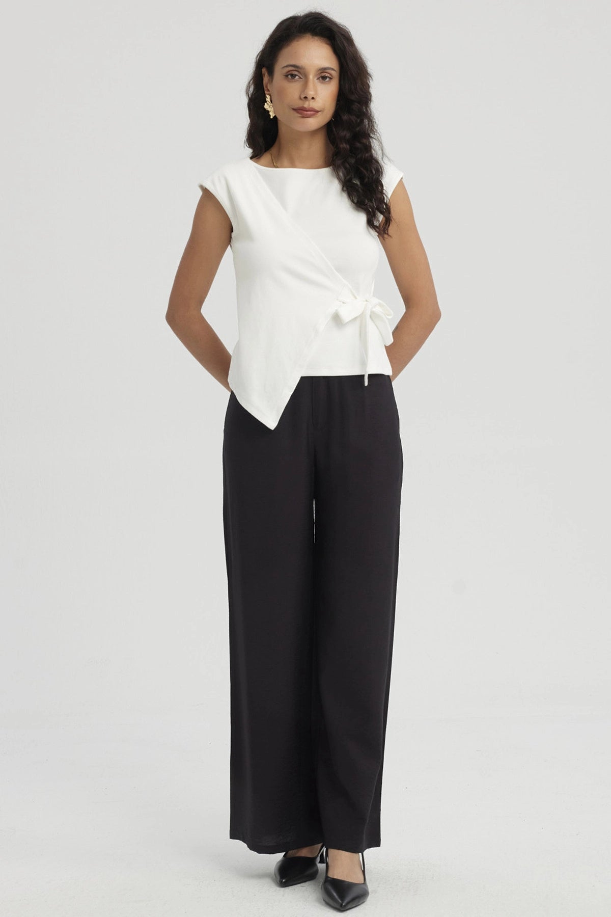 • Pantalón negro de mujer tipo palazzo con cinturón visible