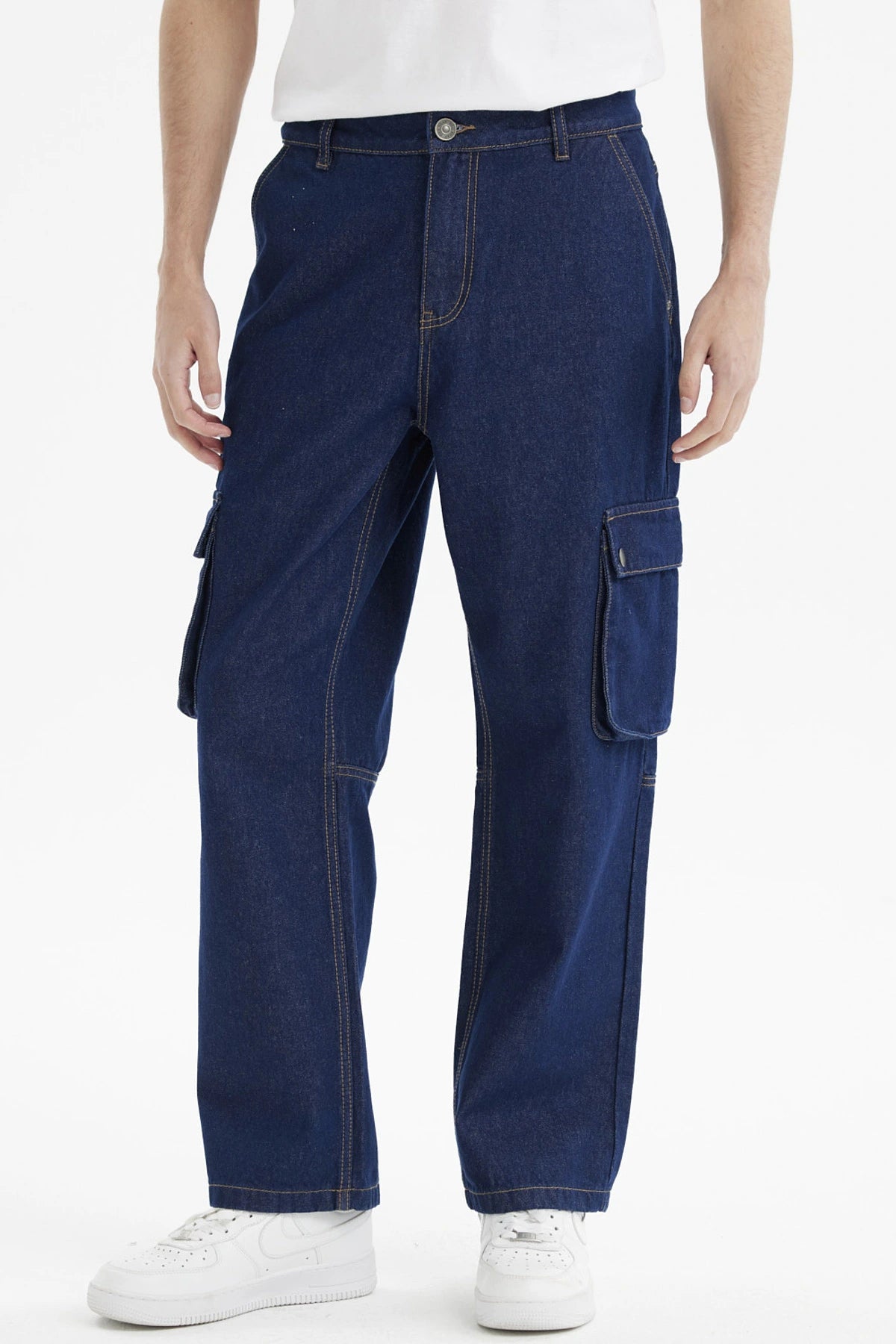 Jeans Hombre Calce Recto Cargo Azul Oscuro