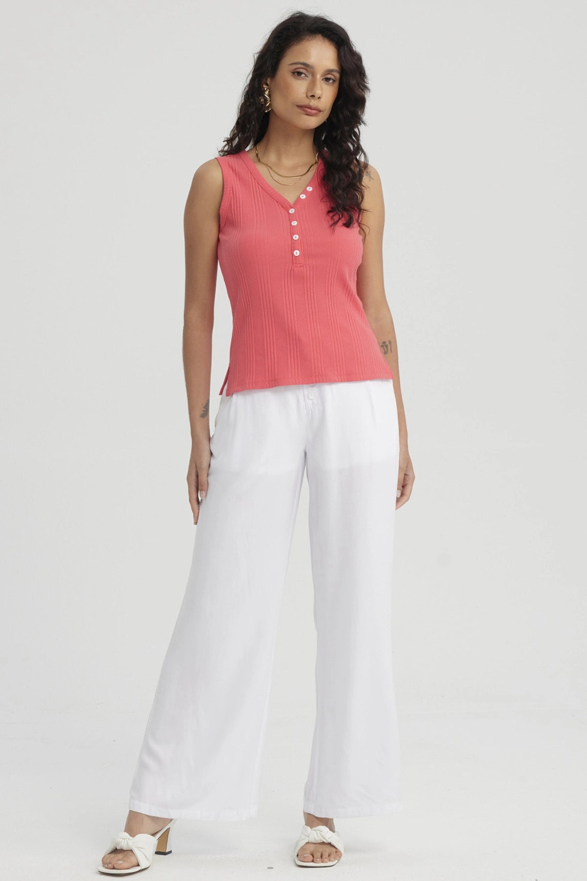 Polera Mujer Botones Pata Lisa Coral