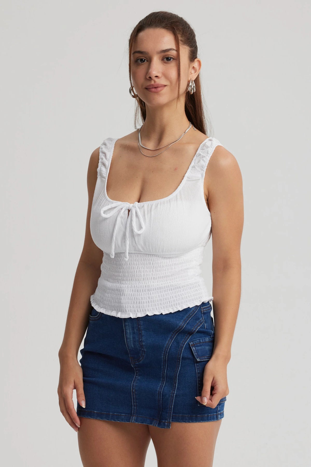 Polera Mujer Panal Lazo Beige Polera Mujer Panal Lazo Blanco