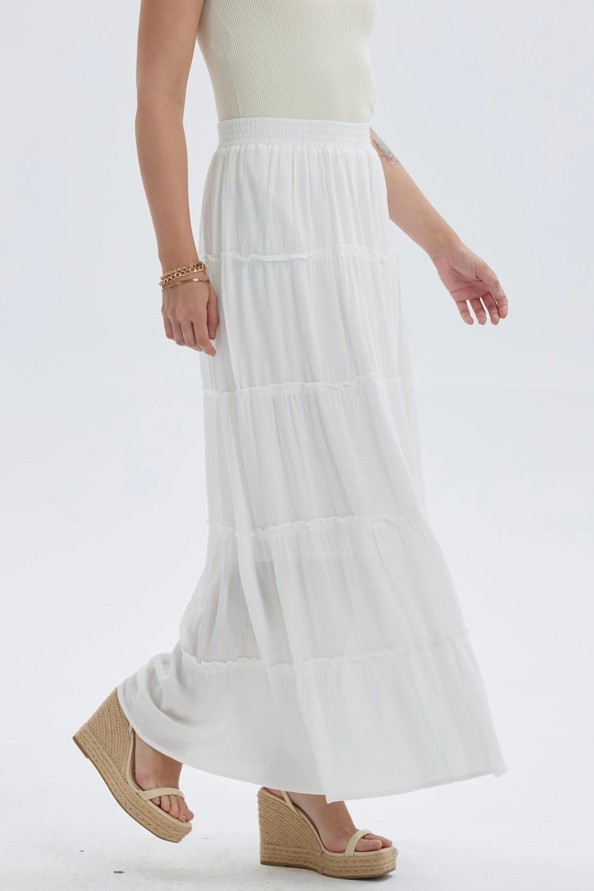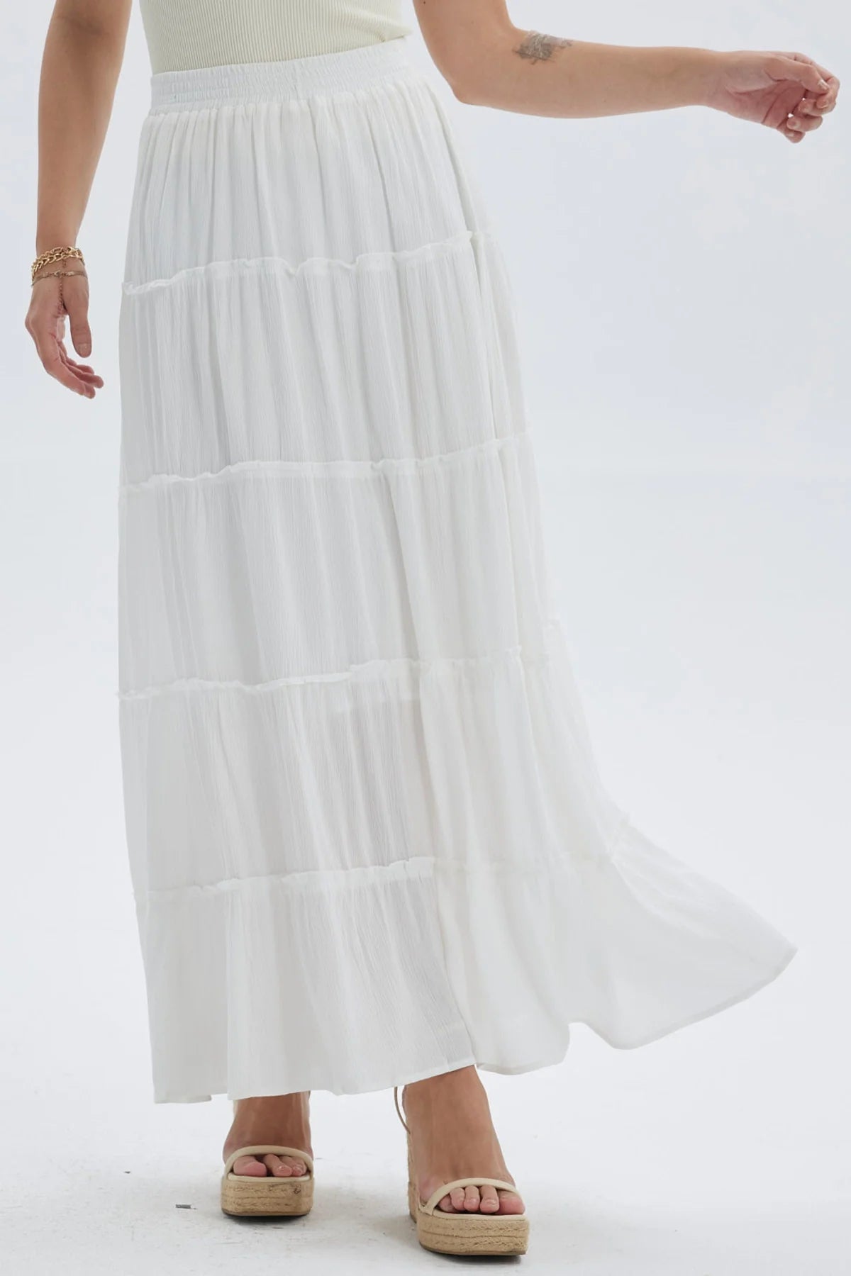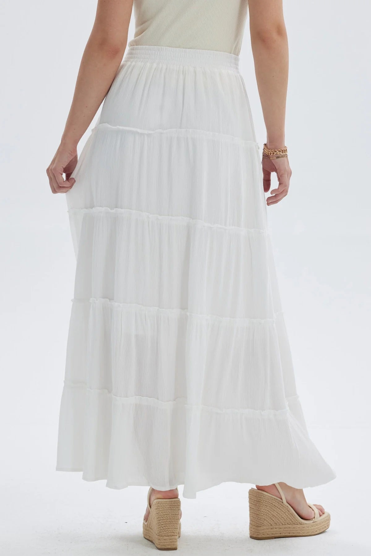 Inicio/Promociones - Todo Vestuario/Falda Mujer Larga Bambula Aplicación Vuelos Crudo