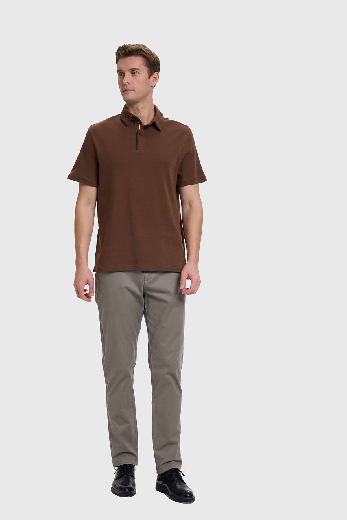 Descubre la polera hombre lisa en un elegante color café, confeccionada en suave algodón que brinda una comodidad excepcional. Su diseño clásico y minimalista la convierte en una prenda versátil, ideal para cualquier ocasión. La suavidad del material te hará sentir fresco y cómodo durante todo el día, mientras que su corte atemporal asegura que siempre luzcas bien. Perfecta para combinar con jeans o pantalones de tela, esta polera es un must-have en tu guardarropa. Viste con confianza y renueva tu estilo personal con esta prenda que refleja tu identidad única.