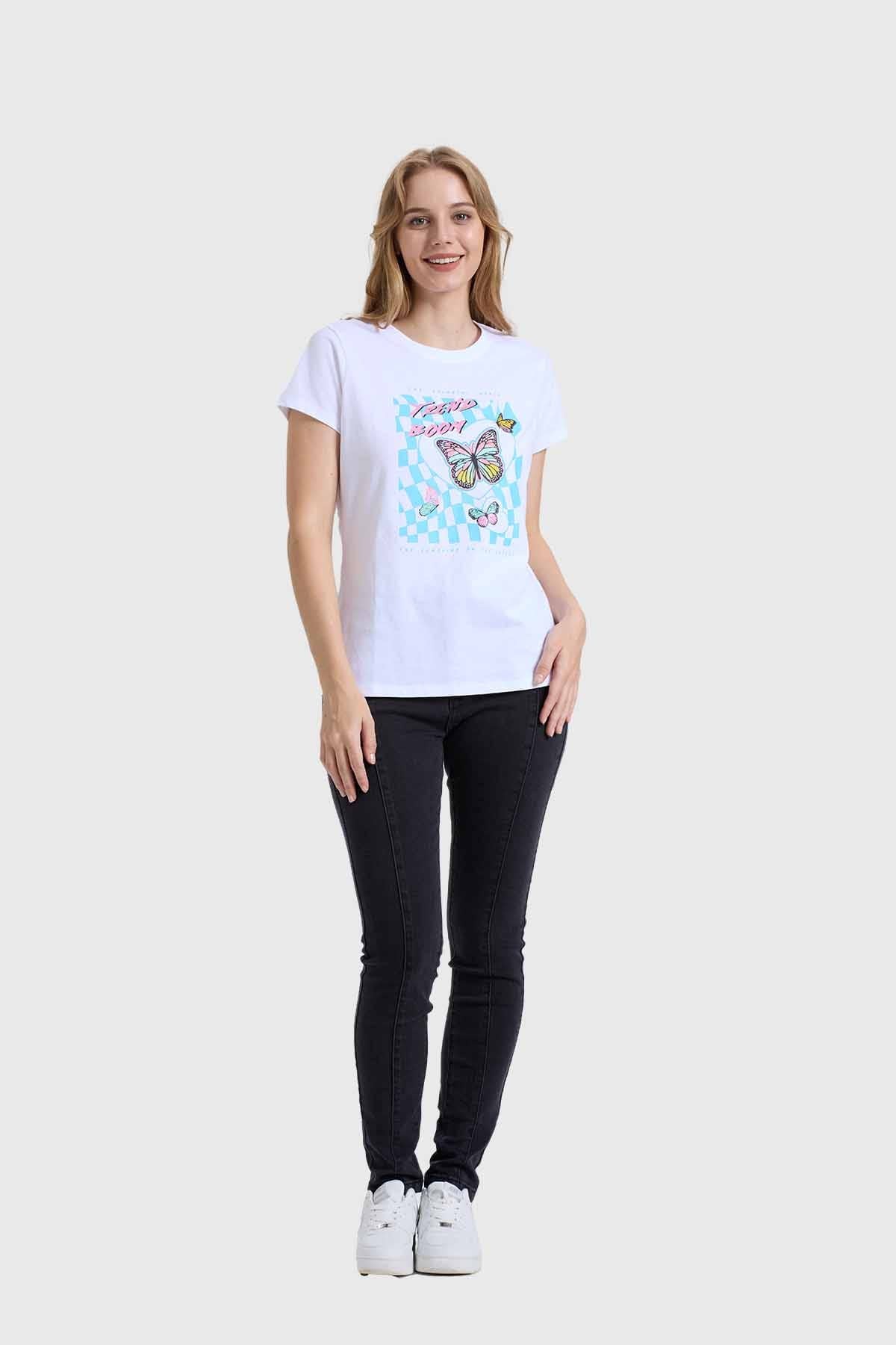 Descubre nuestra polera básica para mujer, en un fresco color blanco con un vibrante diseño print en turquesa. Confeccionada en suave algodón, esta prenda te brinda una comodidad excepcional, ideal para el día a día. Su diseño moderno y atractivo, con estampados de mariposas, le da un toque especial a tu look. Perfecta para combinar con jeans o shorts, es una opción versátil que te hará sentir única. Al usarla, disfrutarás de una suavidad que acaricia la piel y un abrigo ligero que te acompaña en cualquier ocasión. Renueva tu estilo y expresa tu personalidad con esta polera que resalta tu esencia.