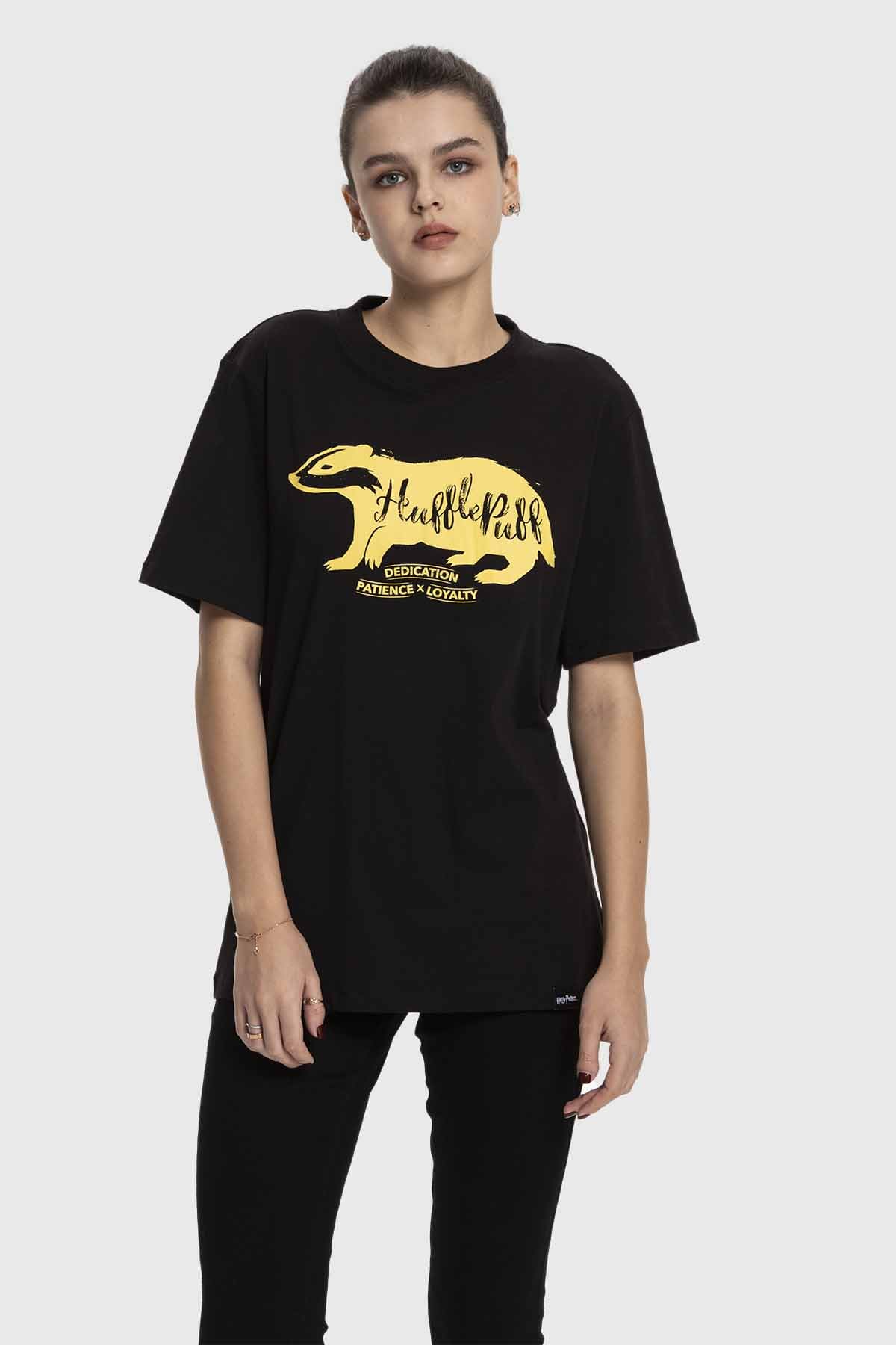 Polera Mujer Oversize Hufflepuff Harry Potter Negro