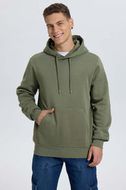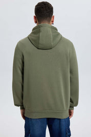 Polerón hombre en color verde militar, hecho de franela cardada que brinda calidez y suavidad. El diseño liso y su cómodo calce lo hacen ideal para días de primavera-verano. Perfecto para una salida casual o un paseo relajado. Luce este polerón junto a jeans para un look moderno y auténtico.