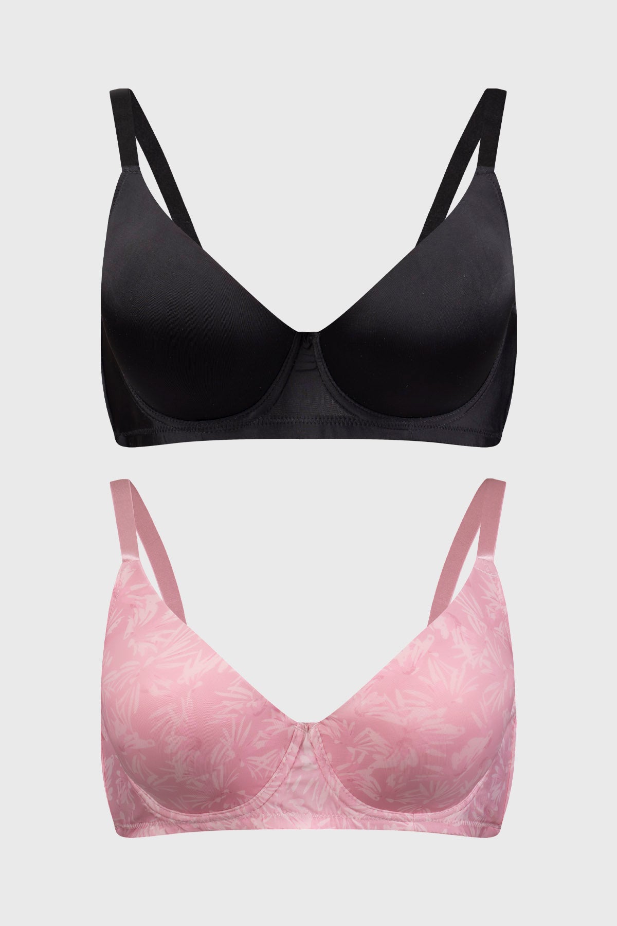 Sostén Mujer Bipack Estampado Liso Palo Rosa