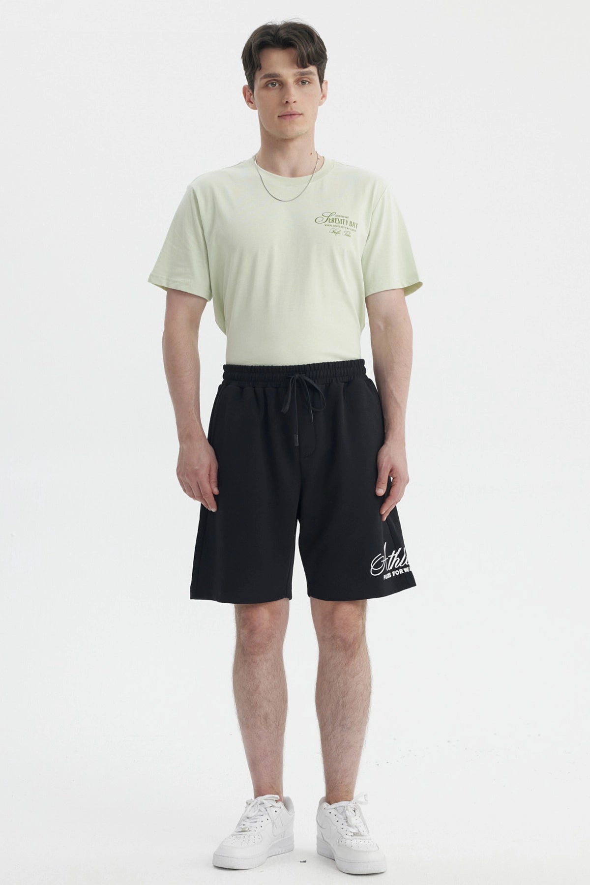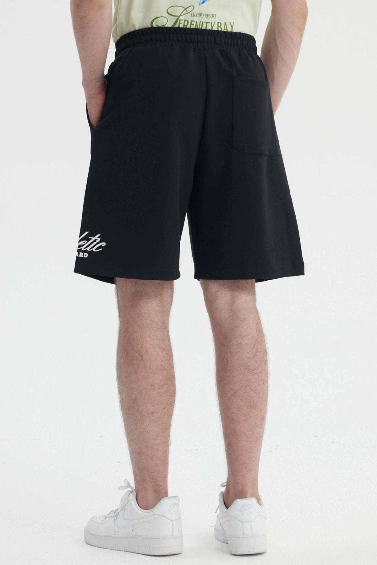 • Bermuda negra para niño con estampado blanco y detalles de cordón