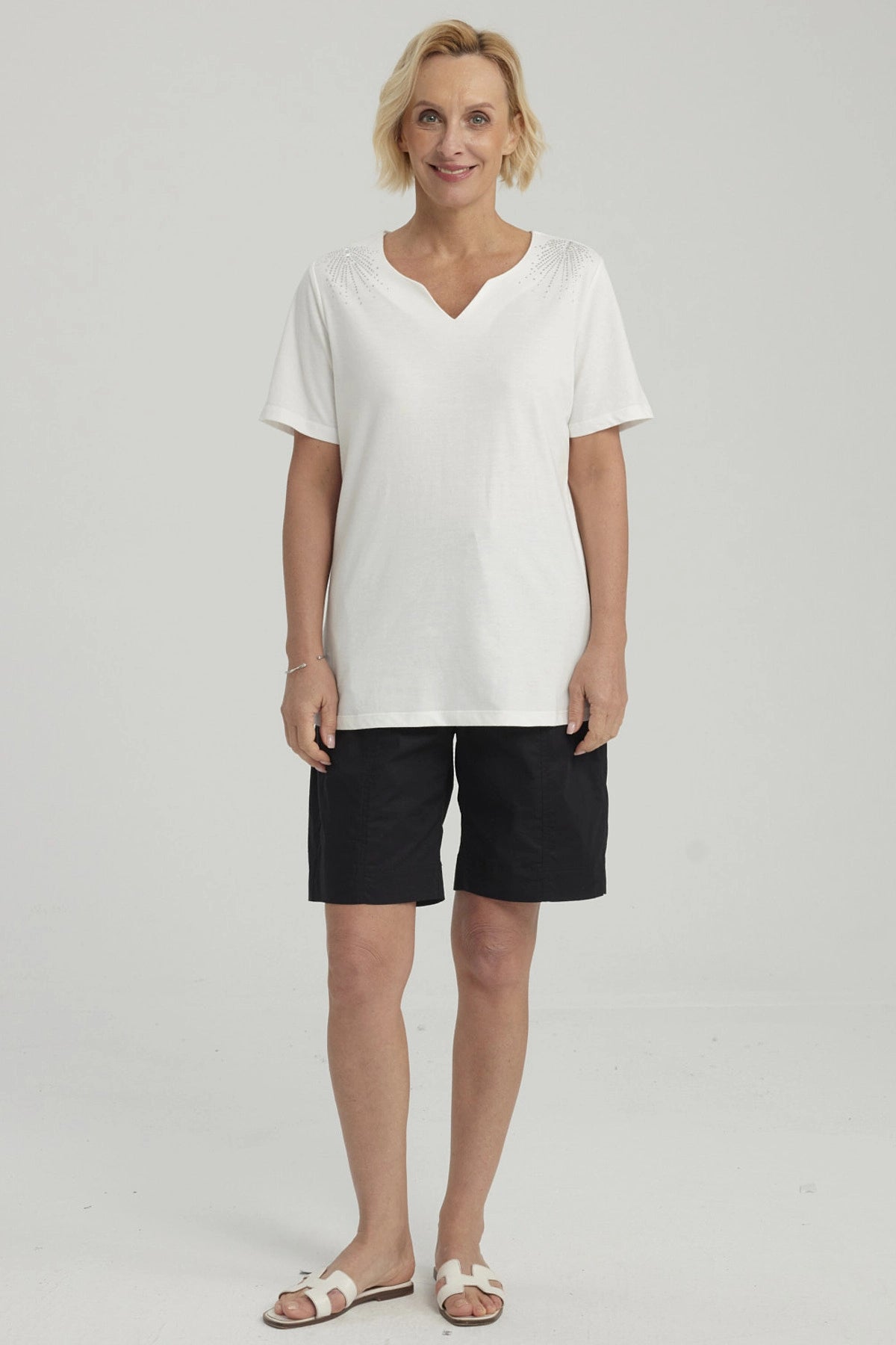 Bermuda Mujer Con Cortes Y Apertura Negro