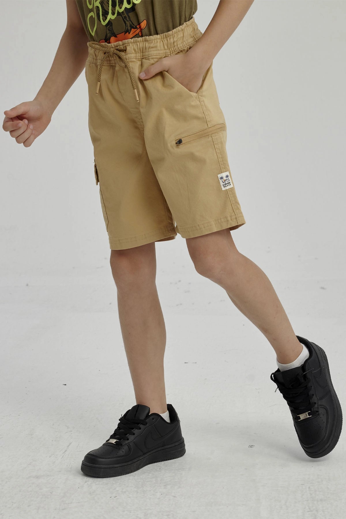 Bermuda Niño Cargo Gabardina Kaki