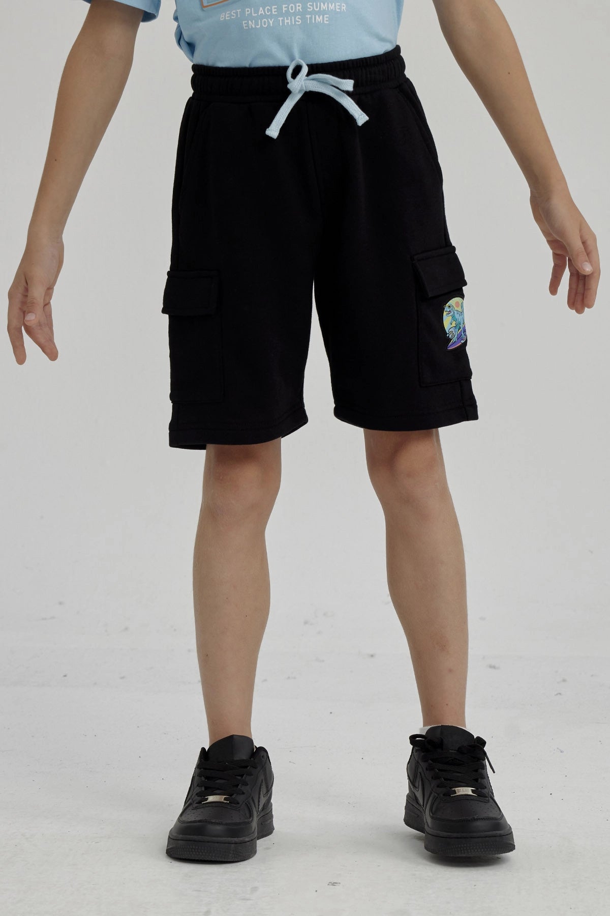 Inicio/Bermudas Niño/Bermuda Niño Franela Con Parche Negro