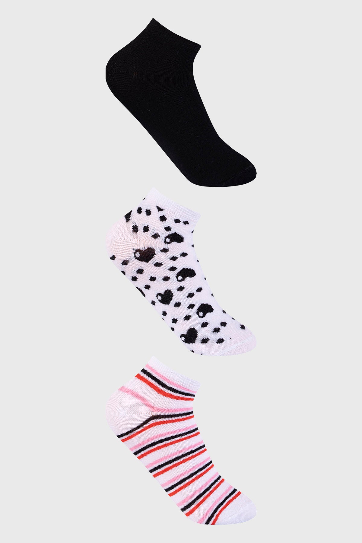 Dale un toque divertido a tus entrenamientos con este tripack de calcetas deportivas para mujer. Confeccionadas principalmente en algodón, ofrecen suavidad y confort. Incluyen un par liso en negro, otro con diseño de corazones y uno más con rayas coloridas, perfectos para darle un toque personal a tus zapatillas. Ideales para combinar con shorts deportivos y una polera suelta, son perfectas para esas sesiones de gimnasio o salidas a trotar al aire libre, asegurando frescura y estilo.