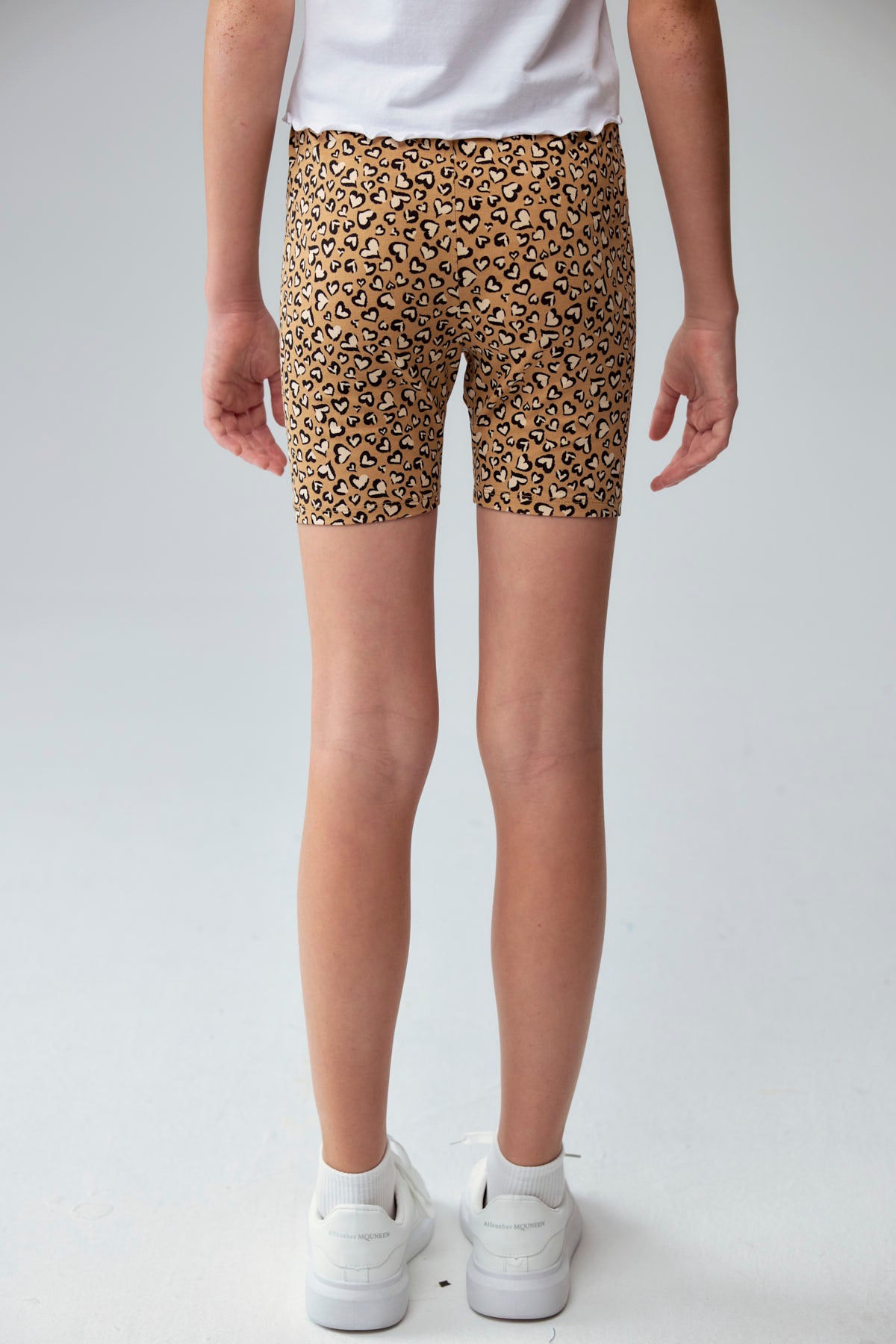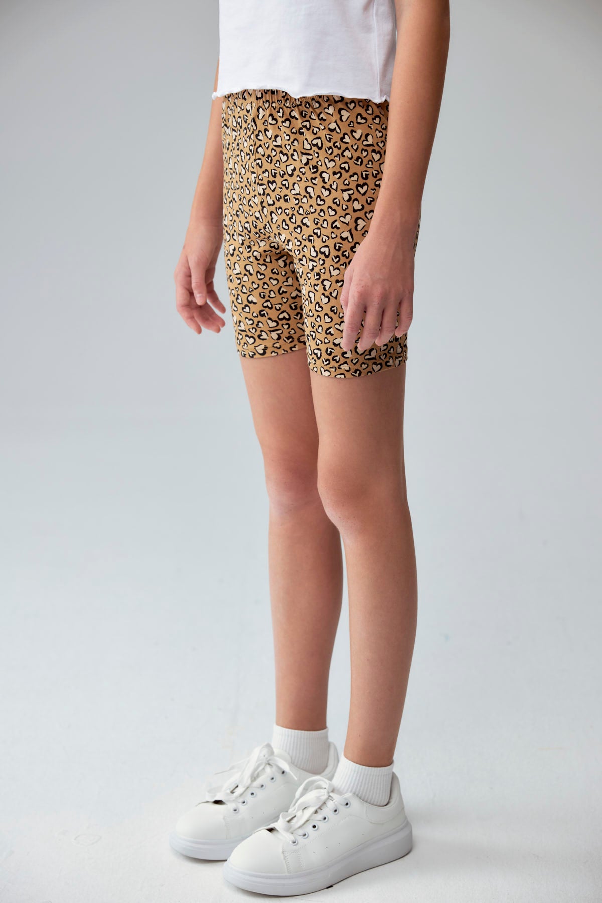 Calza niña biker café con estampado de leopardo y cintura elástica