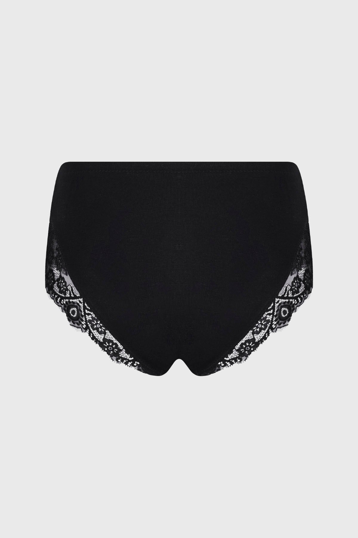 Calzón Mujer Tiro Alto Detalle Encaje Negro