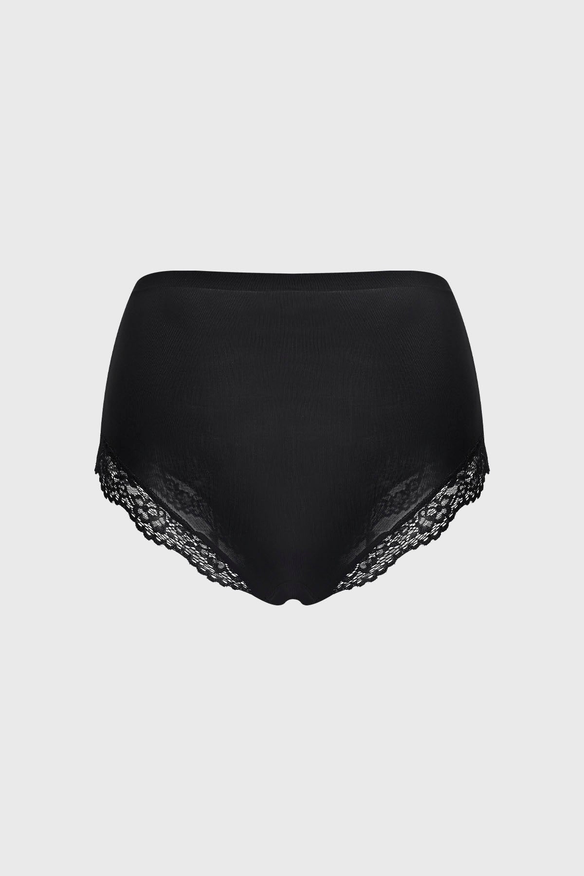 Calzón Mujer Tiro Alto Detalle Encaje Negro